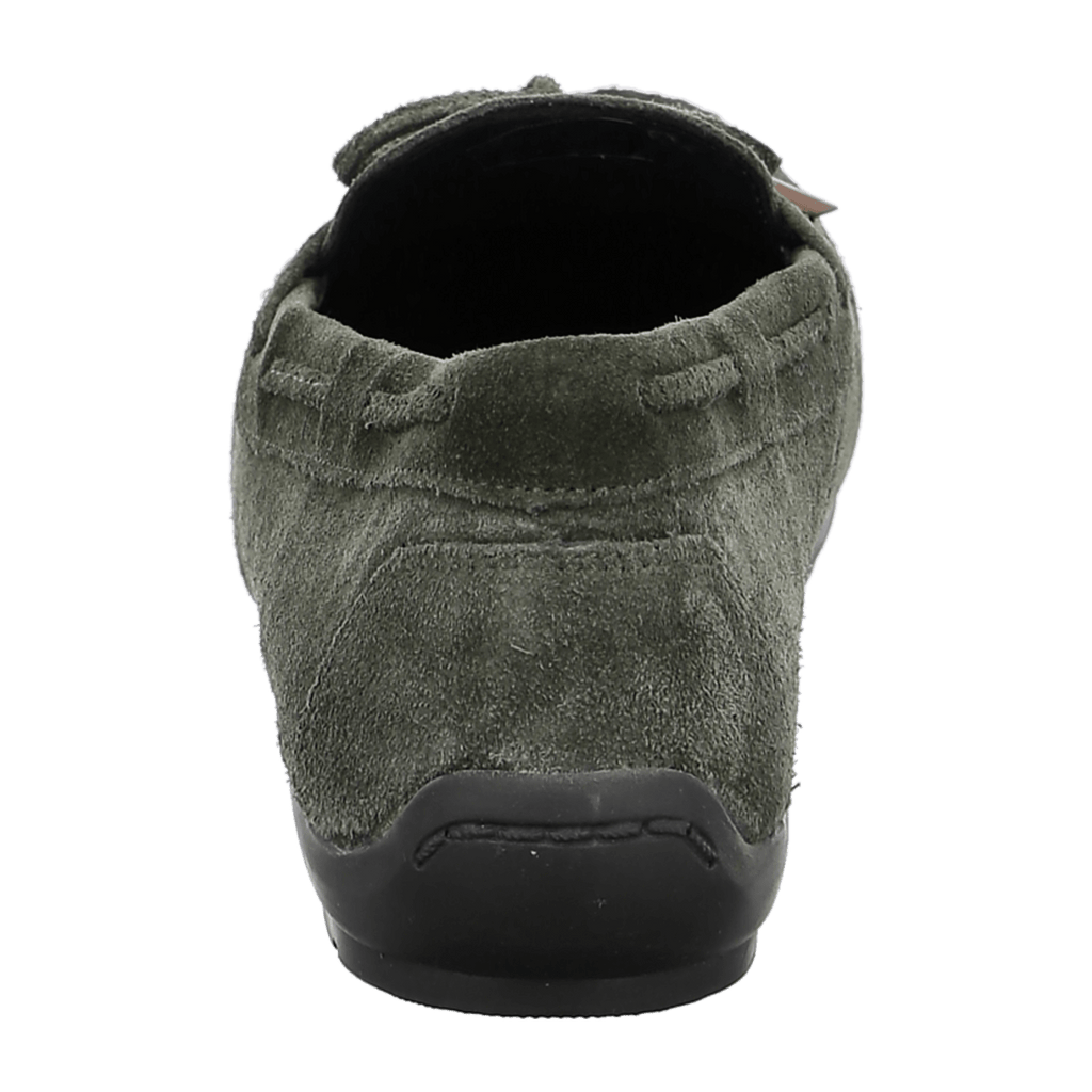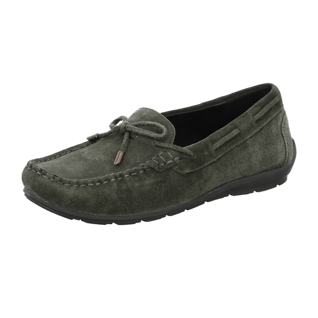 ARA ALABAMA Women's Velour Leather Moccasin in Green with Leather Lining and Rubber Sole - Slip-On