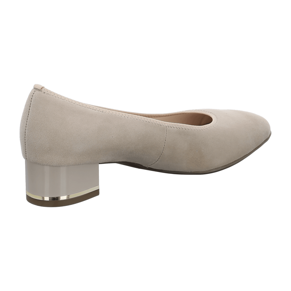 Discover the timeless elegance of the ARA CANBERRA pumps. These beige women's suede pumps blend classic style with modern comfort, making them the perfect companion for the office and special occasions. Their flattering, rounded toe shape adds a feminine touch to any outfit.