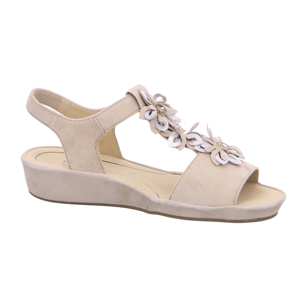 Discover the perfect blend of classic style and modern comfort with the ARA CAPRI Women's T-Bar Sandals. These elegant sandals in timeless beige add a casual touch to your summer outfits and accompany you effortlessly throughout the day. The high-quality nubuck leather and thoughtful design ensure a comfortable fit from the very first minute.
