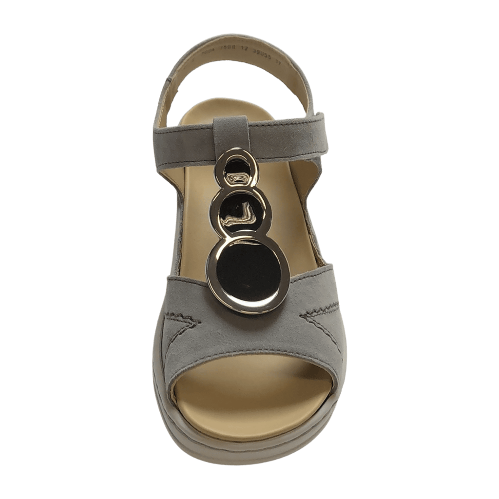 Discover the perfect blend of casual comfort and timeless design with the ARA COLMAR Women's T-Strap Sandals. The elegant grey of the soft nubuck leather makes these sandals a versatile companion for your everyday summer style. They promise unparalleled comfort and stability, blending harmoniously with any outfit.