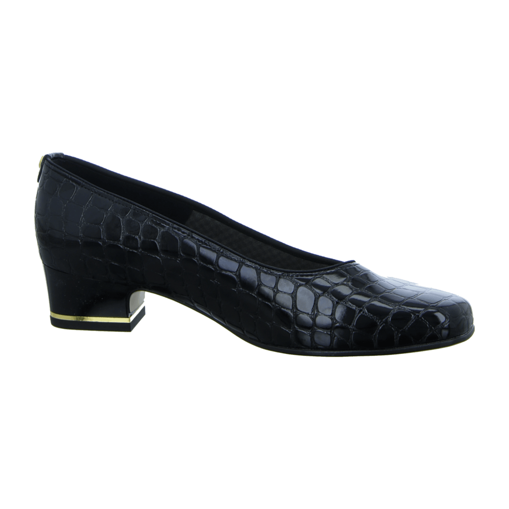 The ARA Comfort Pumps GRAZ combine timeless elegance with noticeable comfort. These classic black pumps add the perfect accent to any day – whether at the office or for a special occasion. The high-quality patent leather gives your appearance a glossy and stylish finish.