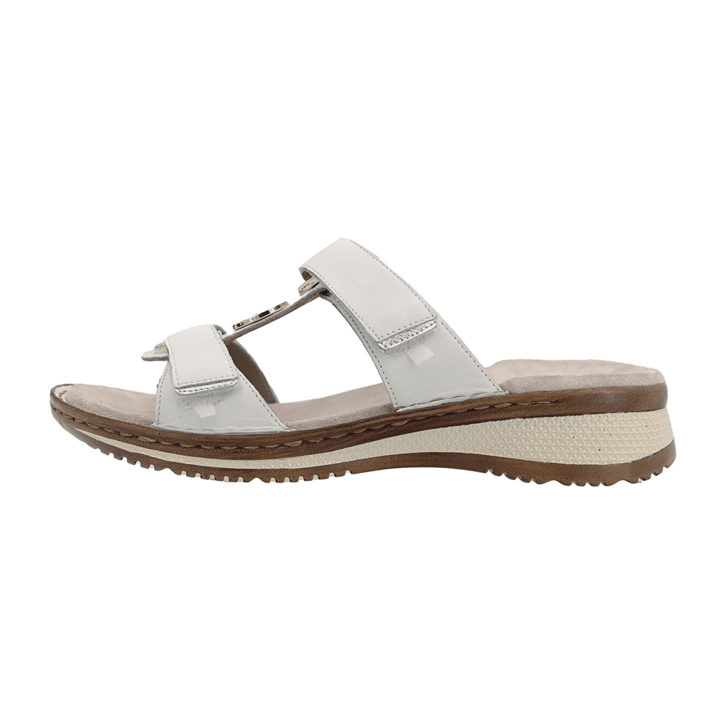 ARA HAWAII HAWA-G Women's White Smooth Leather Slide Sandals with Hook-and-Loop Closure