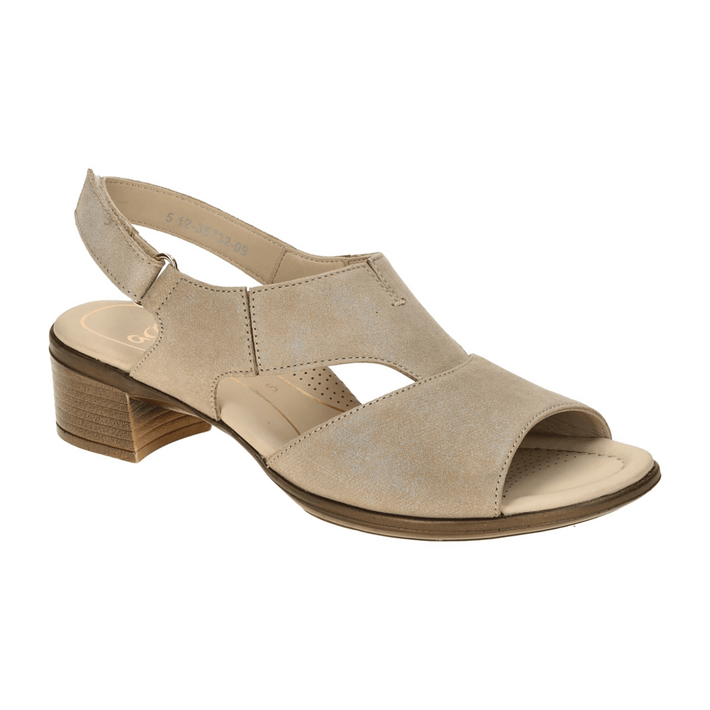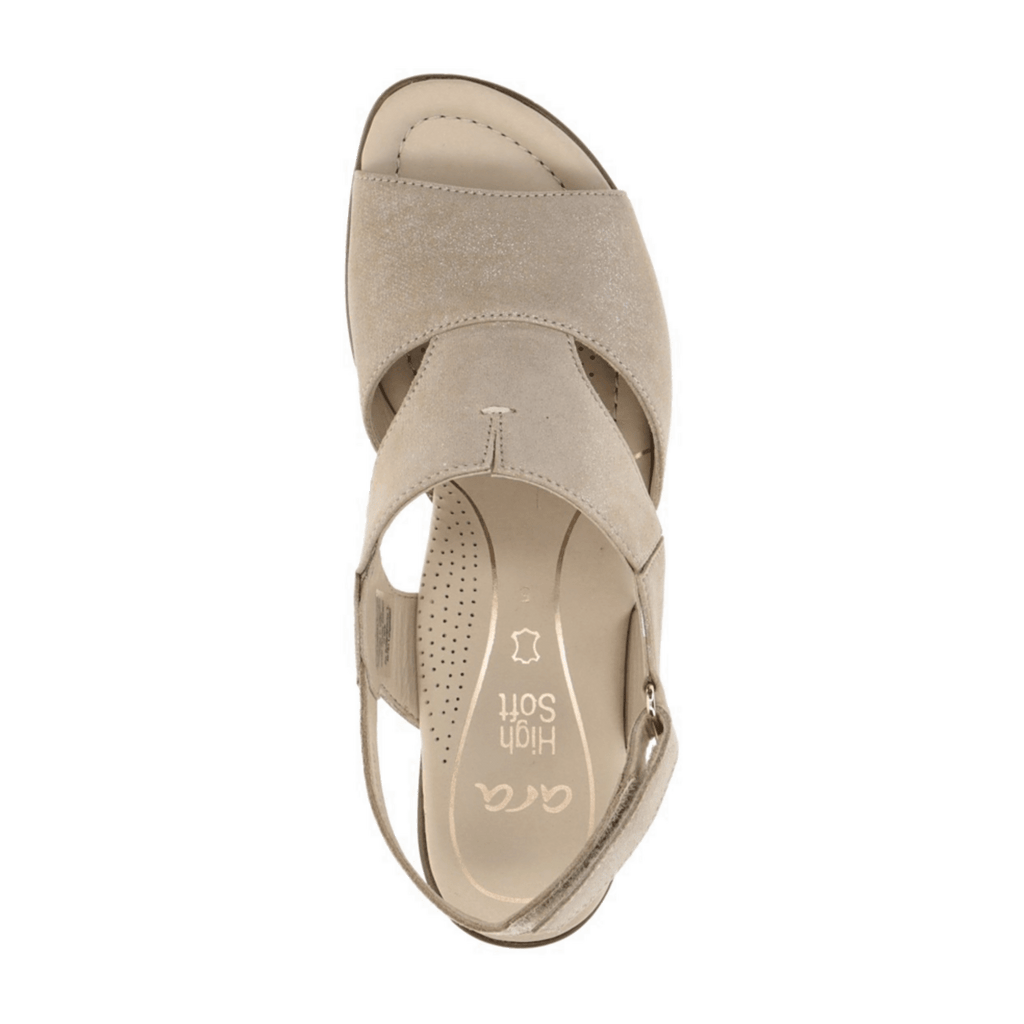 ARA Lugano Women's Sandalettes in Beige Sand Shimmer Suede with Hook-and-Loop Closure - Classic Open-Toe Design