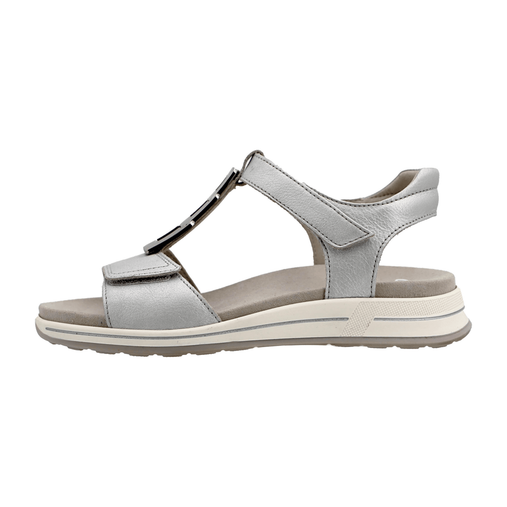 Discover the perfect blend of classic elegance and modern comfort with the ARA Women's Sandals Osaka in silver. These timeless sandals add a stylish accent to any summer outfit and offer excellent all-day comfort from morning to evening, thanks to their thoughtful construction.