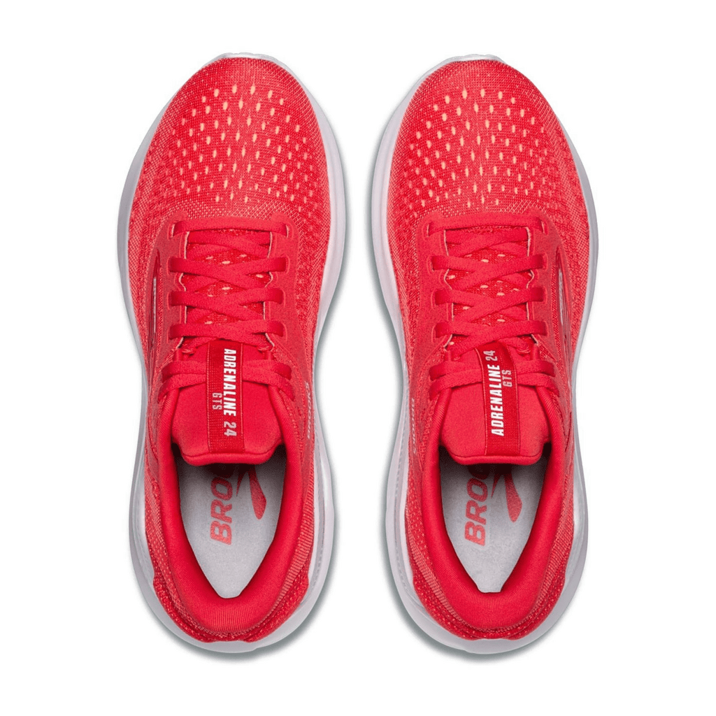 Discover the perfect balance of support and comfort with the Brooks Adrenaline GTS 24 Women's Sneakers. These high-performance running shoes in a striking red offer ideal support for every step, whether during your workout or daily life. Experience a new level of stability and plush cushioning that carries you through the day.