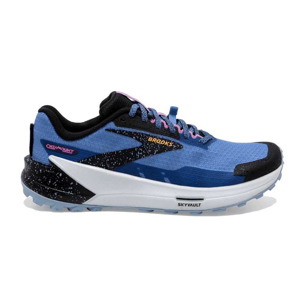 Brooks Women's Catamount 2 Trail Running Shoes - Blue, Black, Yellow - Textile and Synthetic Upper with Mesh Lining - Rubber Outsole
