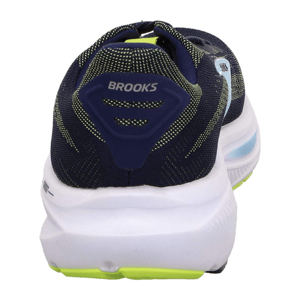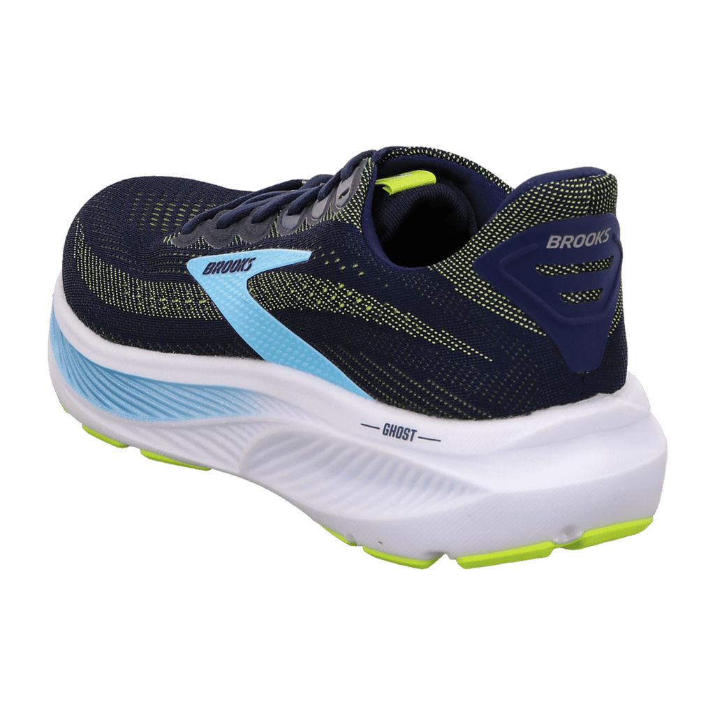 Discover the perfect balance of featherlight comfort and dynamic support for your active lifestyle with the Brooks Ghost 17 men's sneakers. This iconic model in the fresh Peacoat Lime Blue colorway combines innovative cushioning technology with a modern design that accompanies you from morning to night.