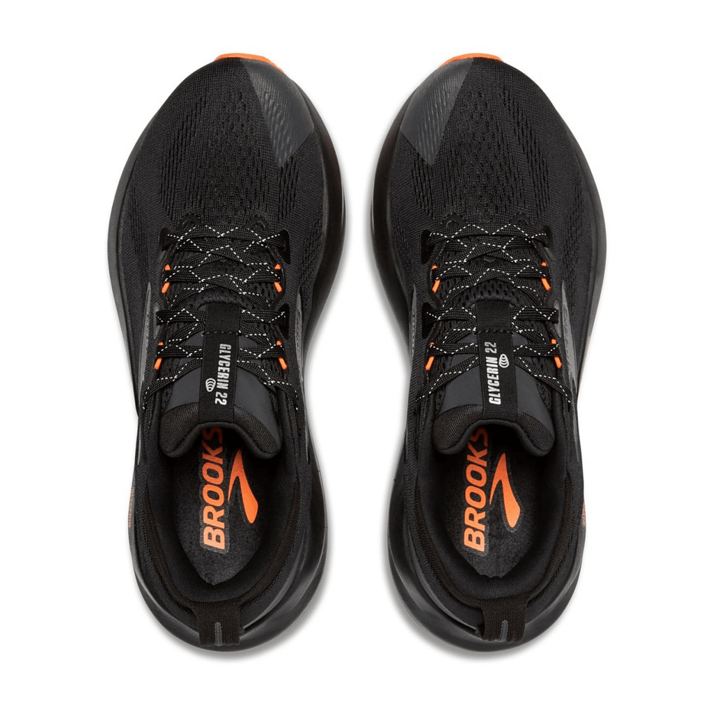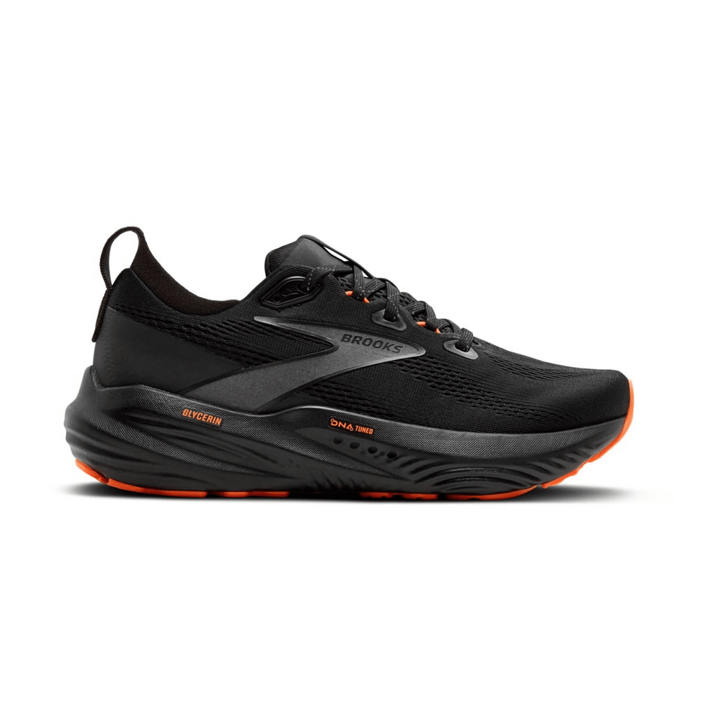 Experience unparalleled running comfort with the Brooks Glycerin 22 Men's Sneakers. These athletic shoes make a statement with their modern synthetic look in black and orange, offering the perfect balance of soft cushioning and dynamic support for your workout. They are the ideal choice for ambitious runners and everyday wearers who value premium quality and style.