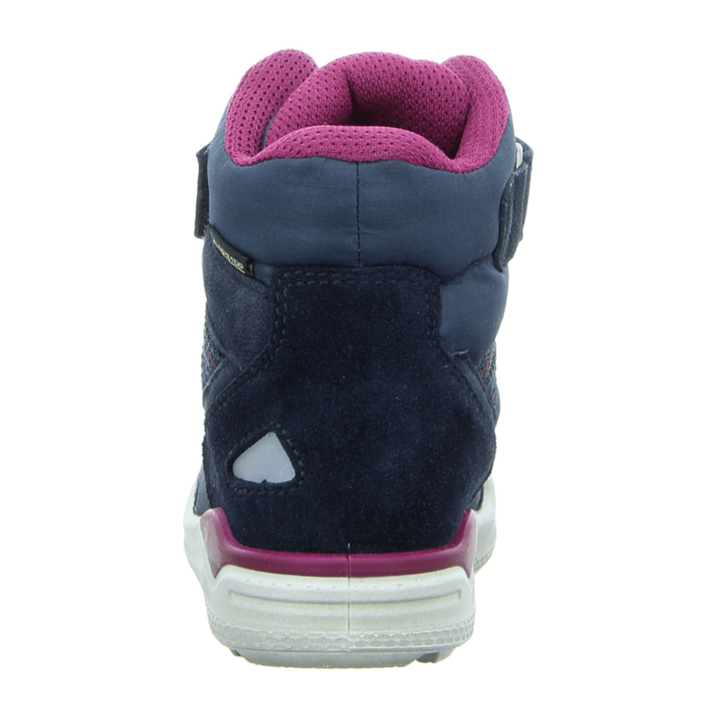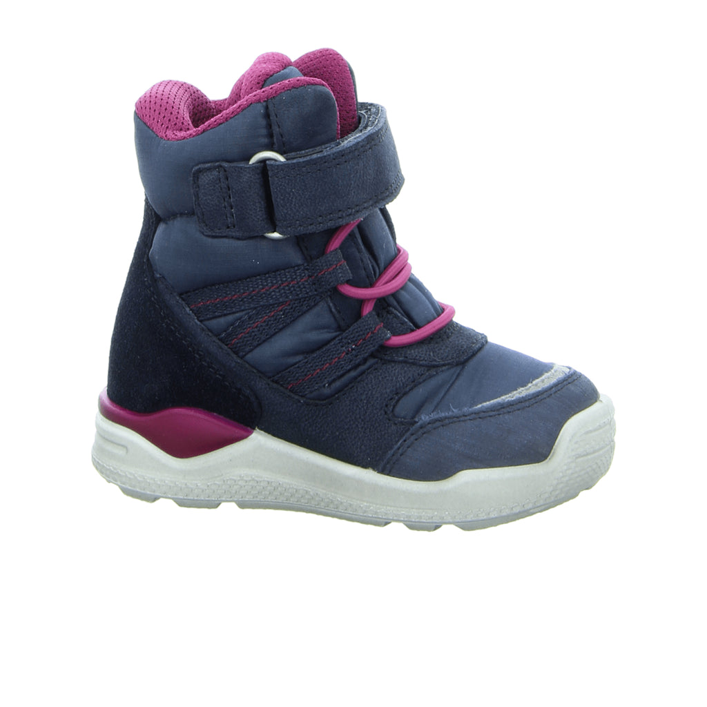 Prepare your child for winter with the ECCO Urban Mini kids' winter boots! These boots are expertly crafted to handle extreme weather conditions thanks to a high-performance membrane that not only offers significant weather protection but also enhances comfort. Made from exquisite smooth leather and suede in a vibrant blue and fuchsia color, these boots are as stylish as they are functional. They feature a soft artificial fur lining and insole, ensuring your child's feet stay warm and cozy. The fashionable and lightweight synthetic sole provides excellent cushioning, while an additional Velcro fastener ensures a secure fit. Perfect for active kids who also want to look great!