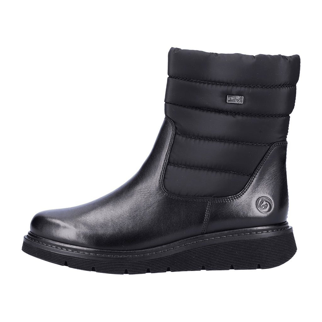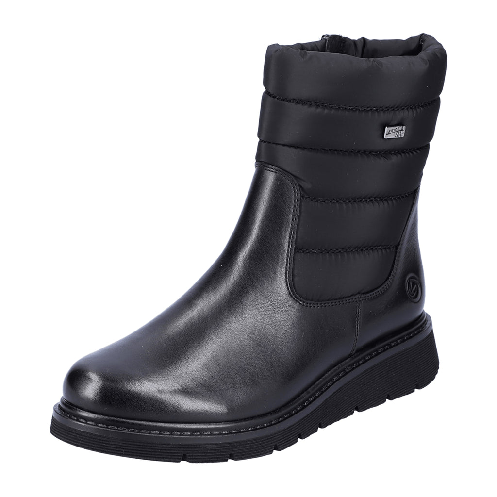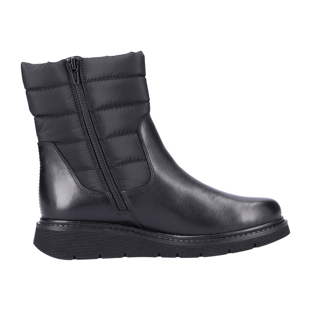 Remonte Black Leather Ankle Boots for Women with Warm Lining and Zip Closure