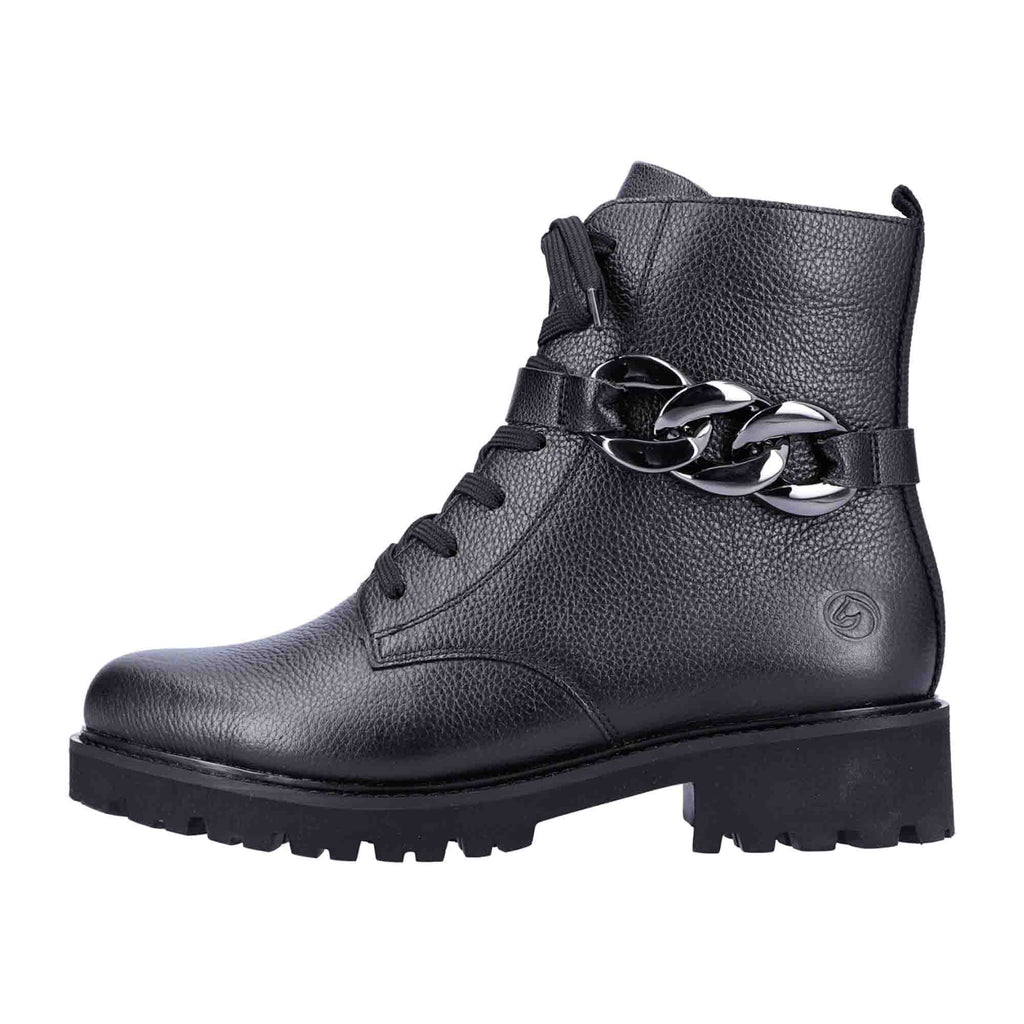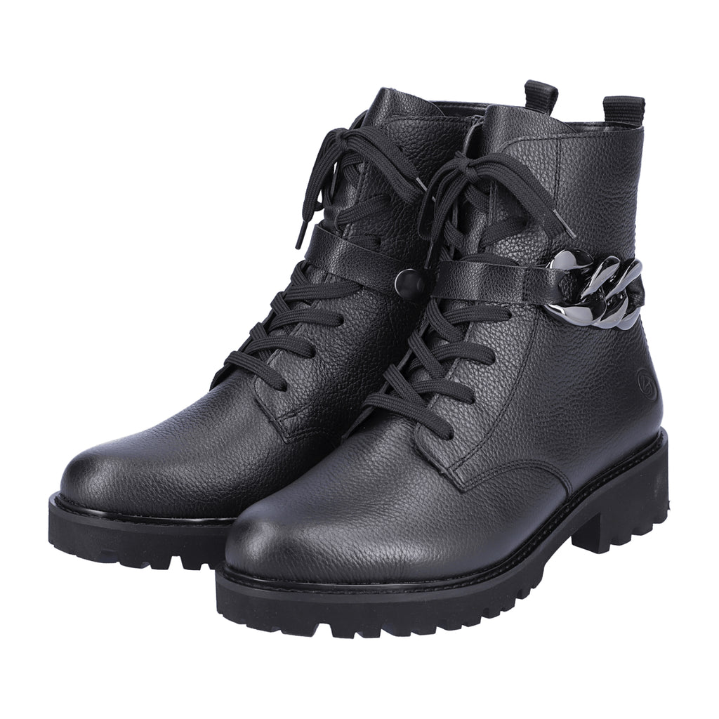 Remonte Black Leather Biker Boots for Women with Chain and Side Zipper