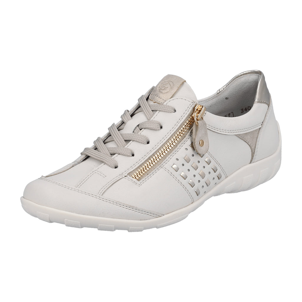 Remonte Comfortable Lace-Up Women's Shoes White Leather with Zipper Closure