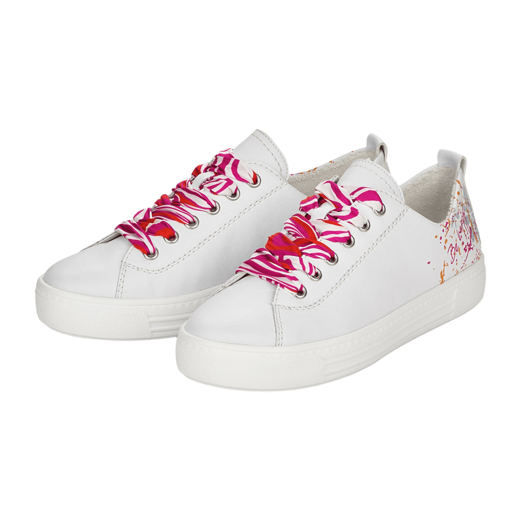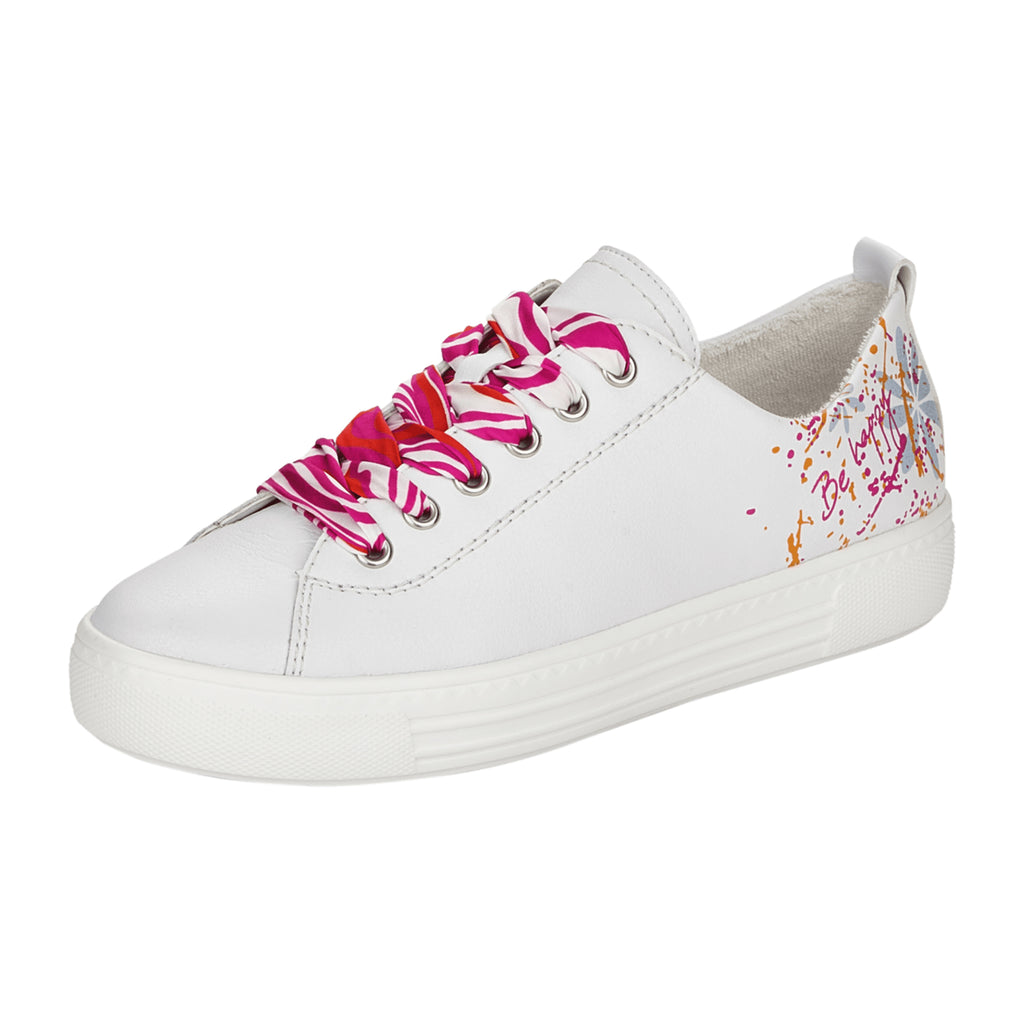 Remonte D0900 Women's White Leather Sneakers with Laces and Round Toe