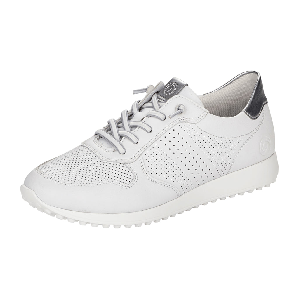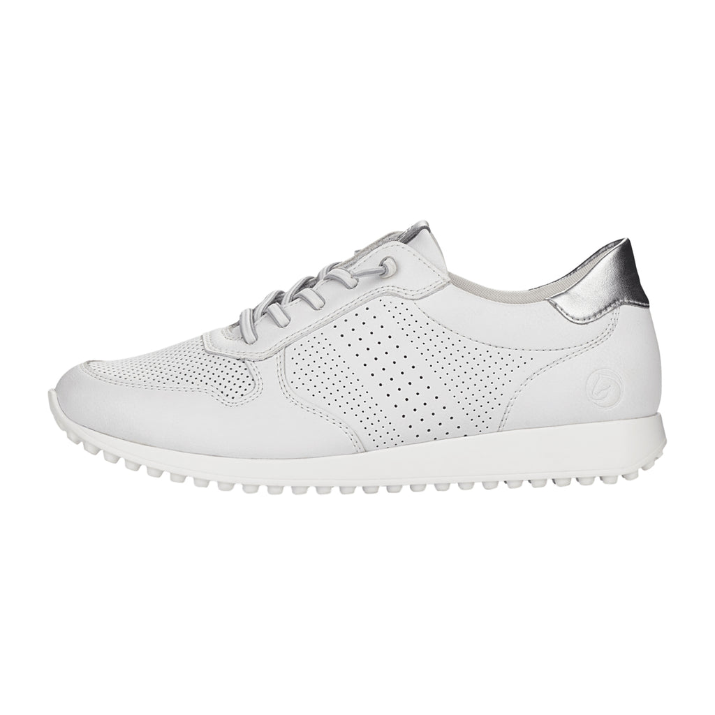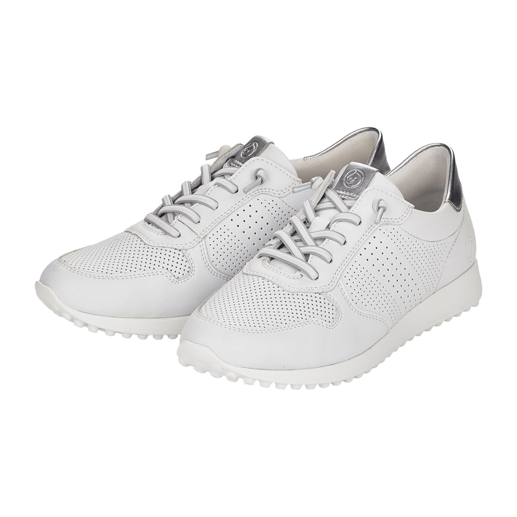 Remonte D3100 Women's White Leather Sneakers with Laces and Elastic Band