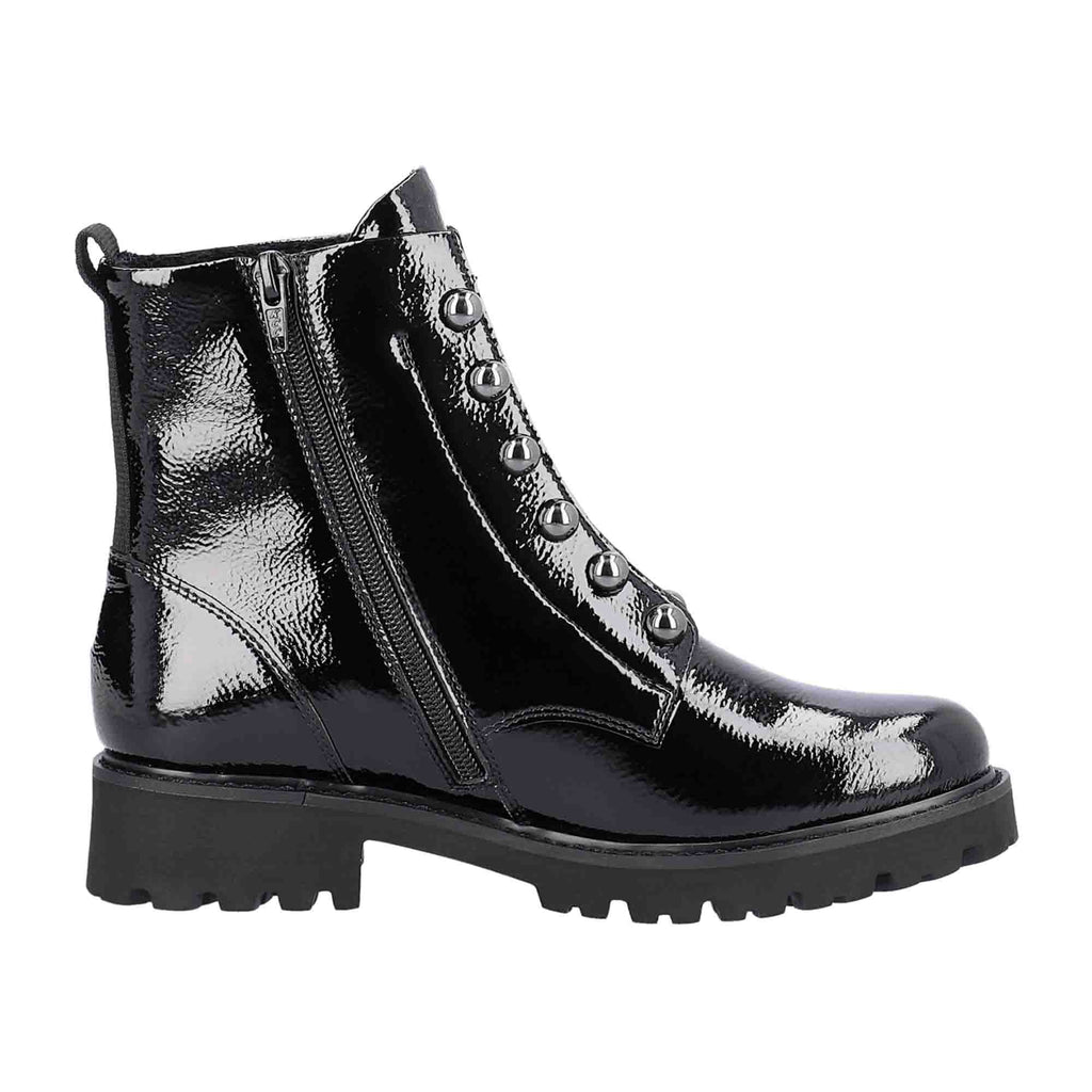 Slip into style and comfort with the Remonte D8670-03 women's shoes. Crafted from high-quality patent leather, these shoes are both durable and stylish. The textile interior provides a cozy feel, while the EVA sole ensures a sporty look and great traction. Perfect for the Fall/Winter season with a 3.5 cm heel height, these black shoes are a must-have for any young adult looking for a trendy footwear option. Keep them looking like new by gently removing dust and dirt with a soft shoe brush or a damp cloth, and regularly treating them with colorless waterproof spray.