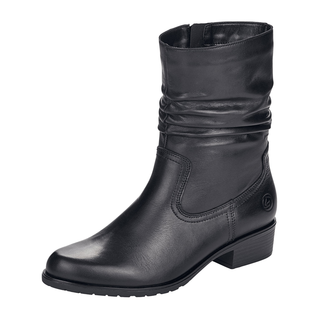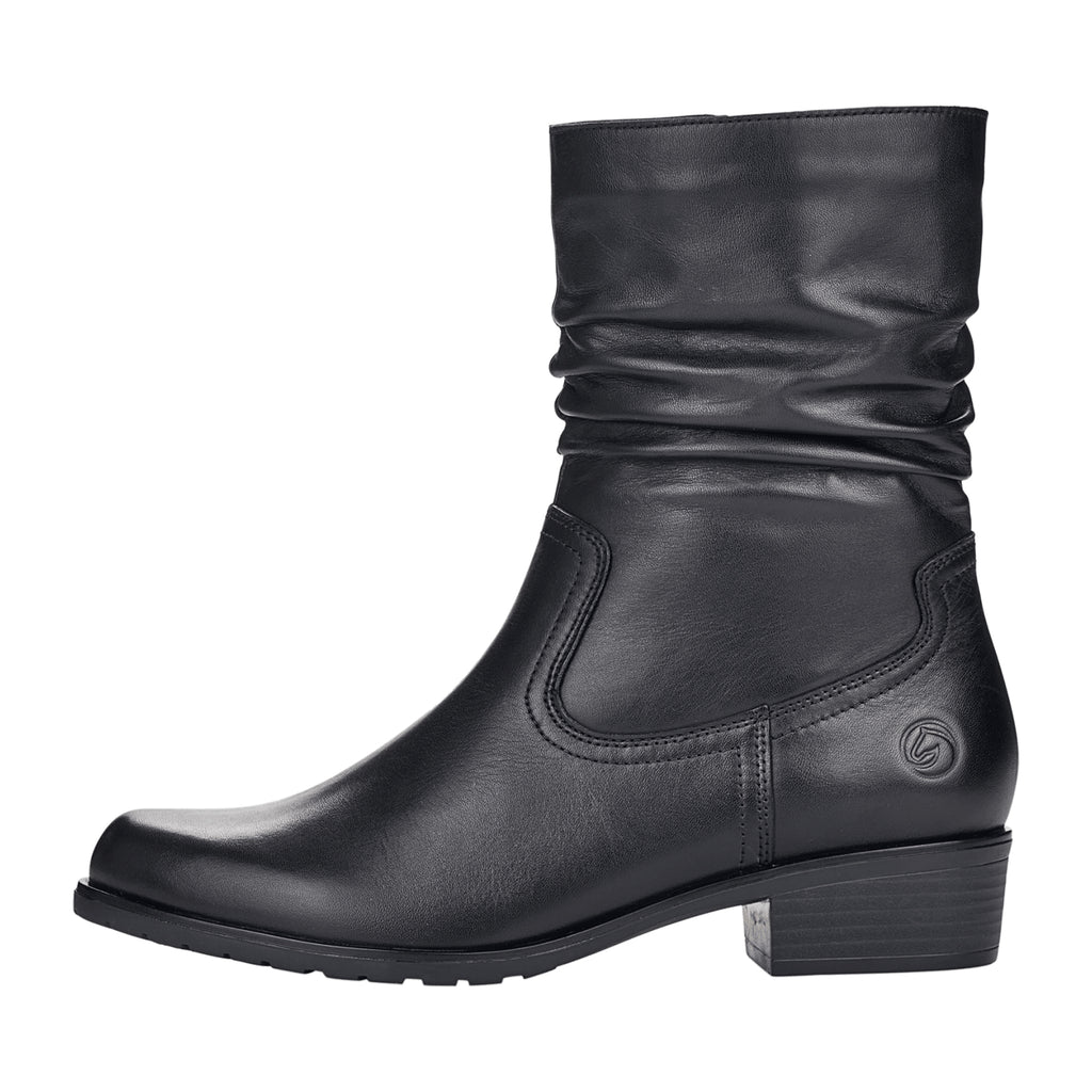 Remonte Dorndorf Ladies Black Leather Boots with Velvet Lining and Zip Closure