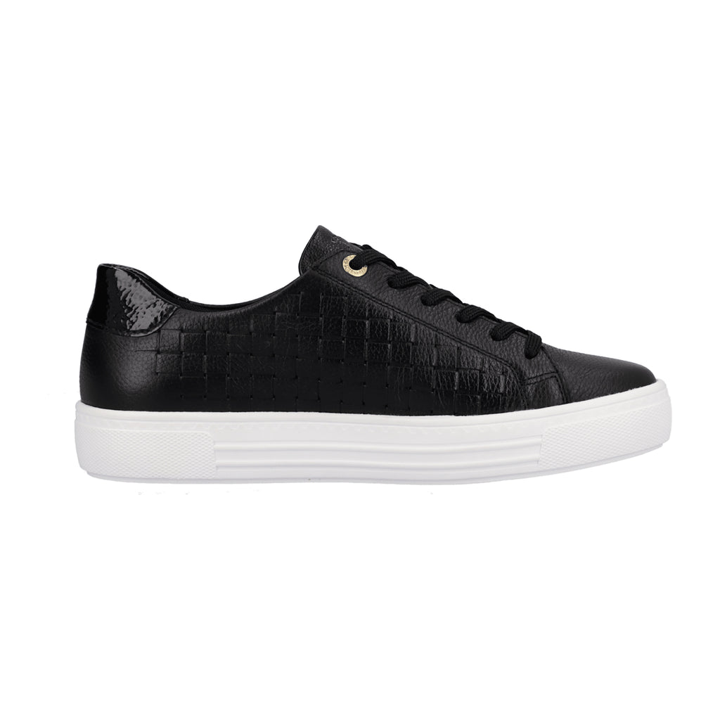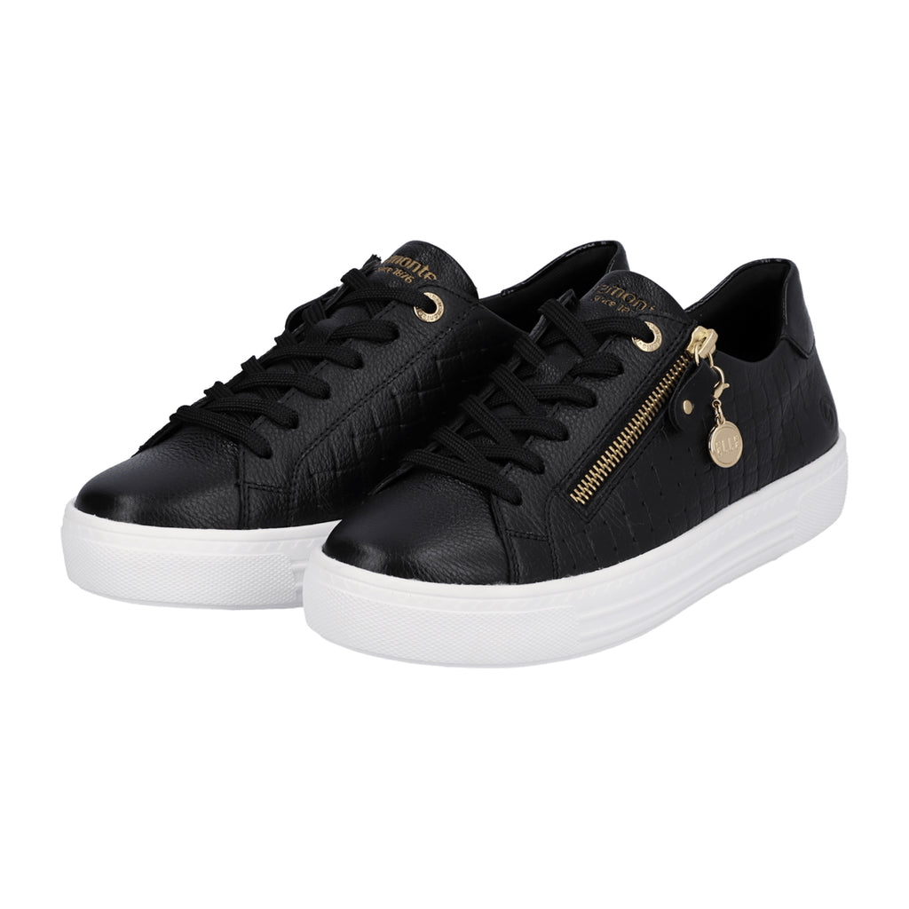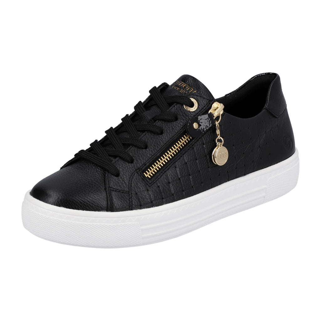 Upgrade your sneaker game with these stylish and durable Remonte FS Half Shoes in sleek black. Featuring high-quality smooth leather and a convenient zipper closure alongside laces, these sneakers offer both fashion and function. The Lite 'n Soft technology provides a soft footbed paired with an ultra-light sole for all-day comfort.