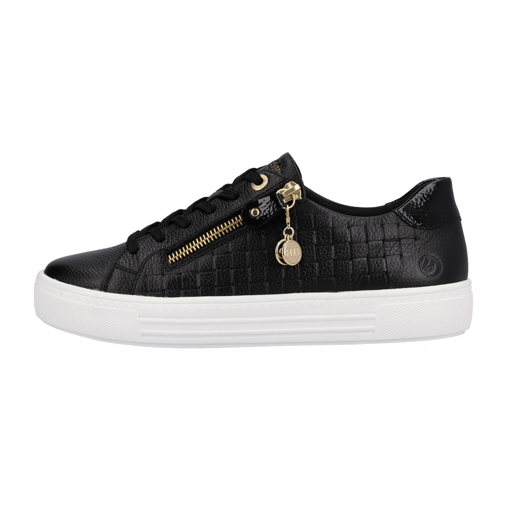 Remonte FS Women's Black Leather Sneakers with Zip Closure and Comfort Fit
