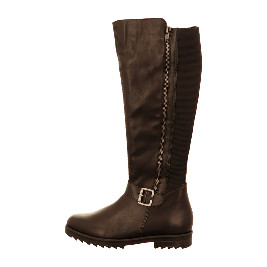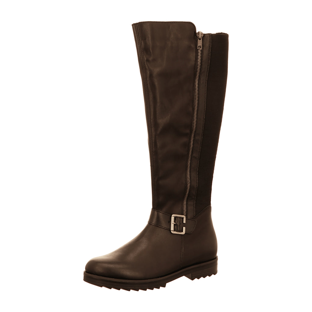 Remonte NV Black Leather Overknee Boots for Women with Block Heel and Zipper