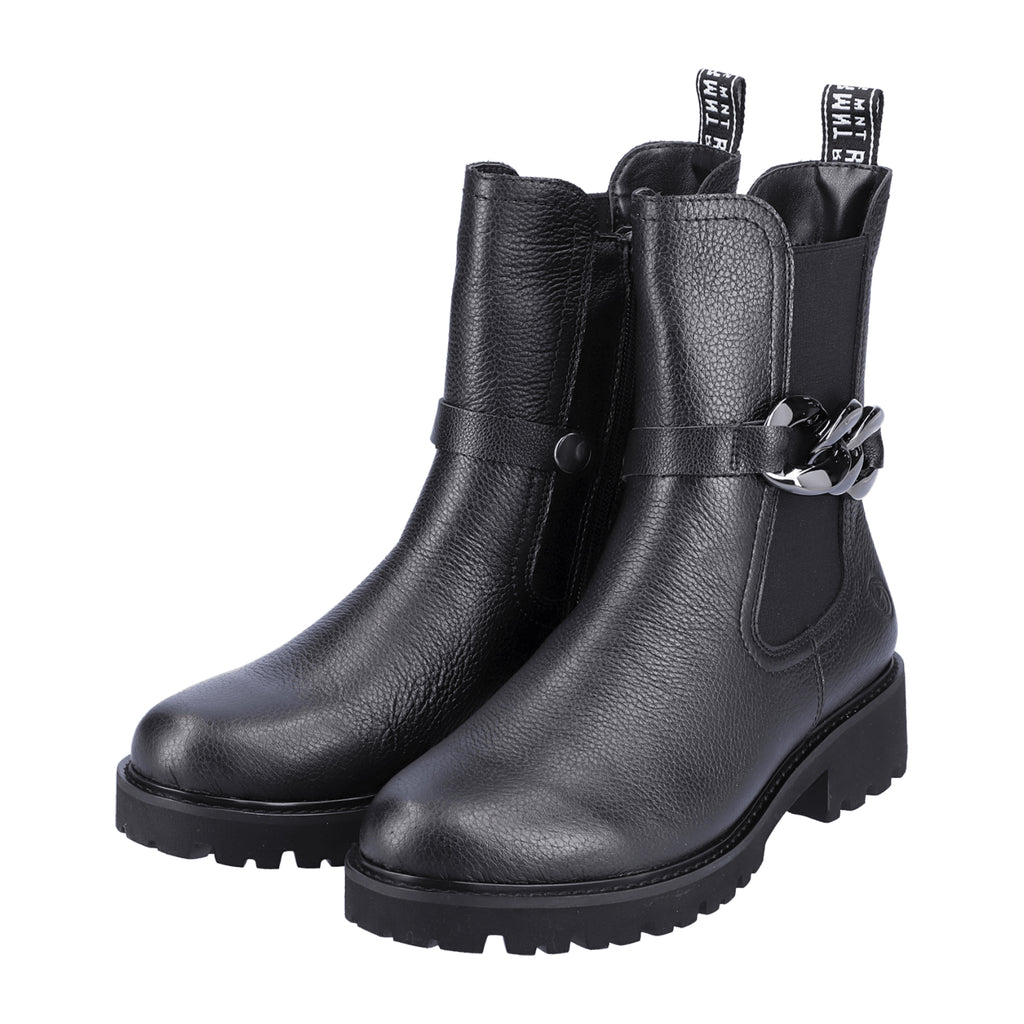 Remonte Women's Black Chelsea Boots with Removable Chain and Side Zipper