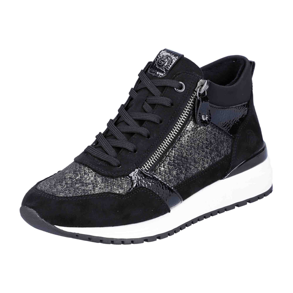 Remonte Women's Black High-Top Sneakers with Silver Accents and Zipper Laces
