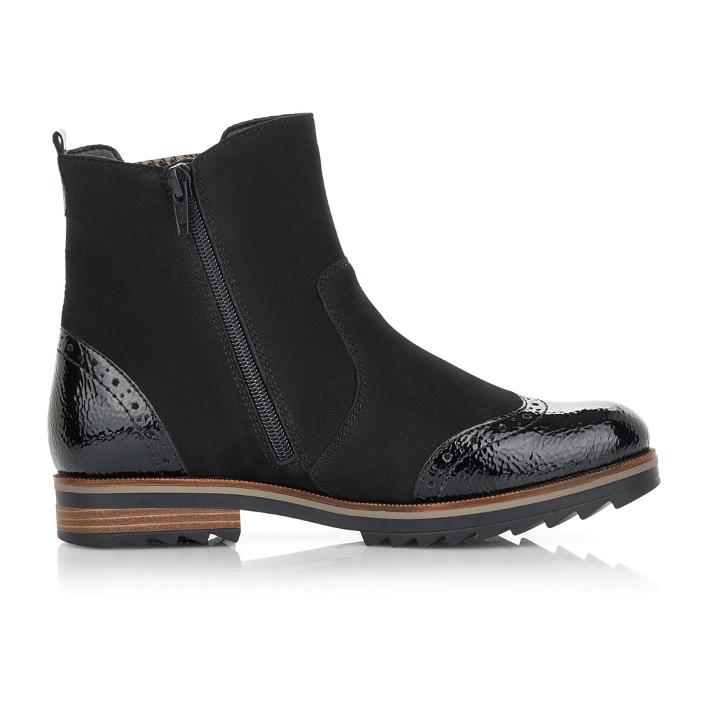 Remonte Women's Black Leather Ankle Boots with Block Heel and Zip Closure