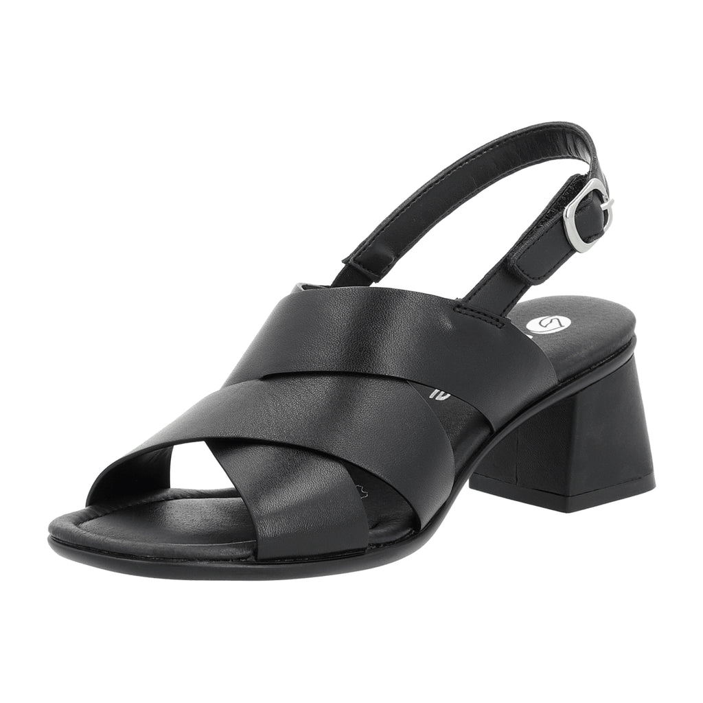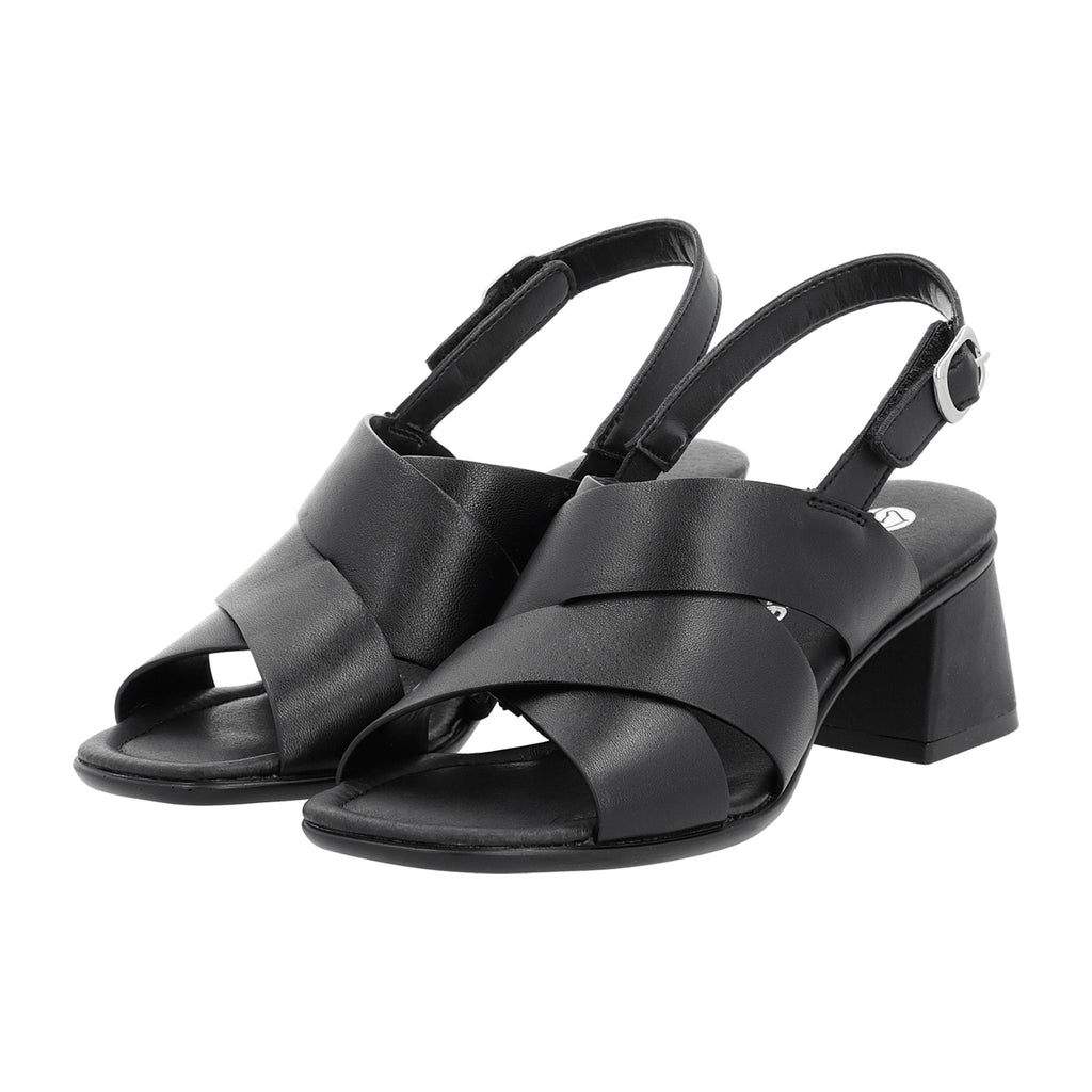 Remonte Women's Black Leather Sandals with Block Heel and PU Sole