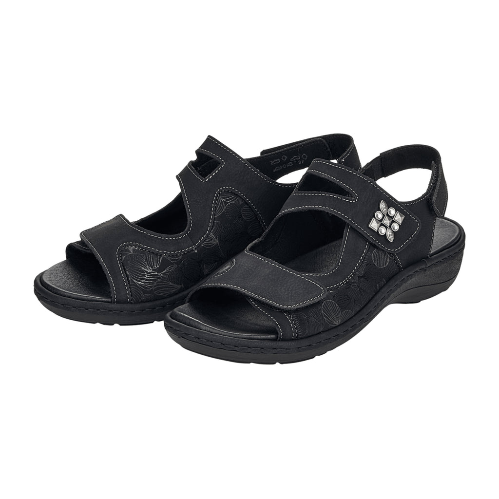 Remonte Women's Black Sandals Adjustable Straps Cushioned Footbed Comfortable