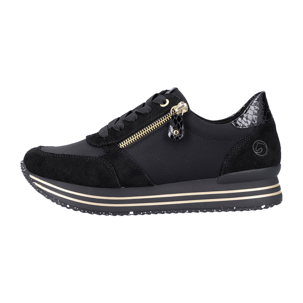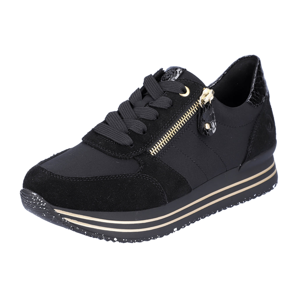 Remonte Women's Black Sneakers with Softshell and Suede, Comfortable Fit