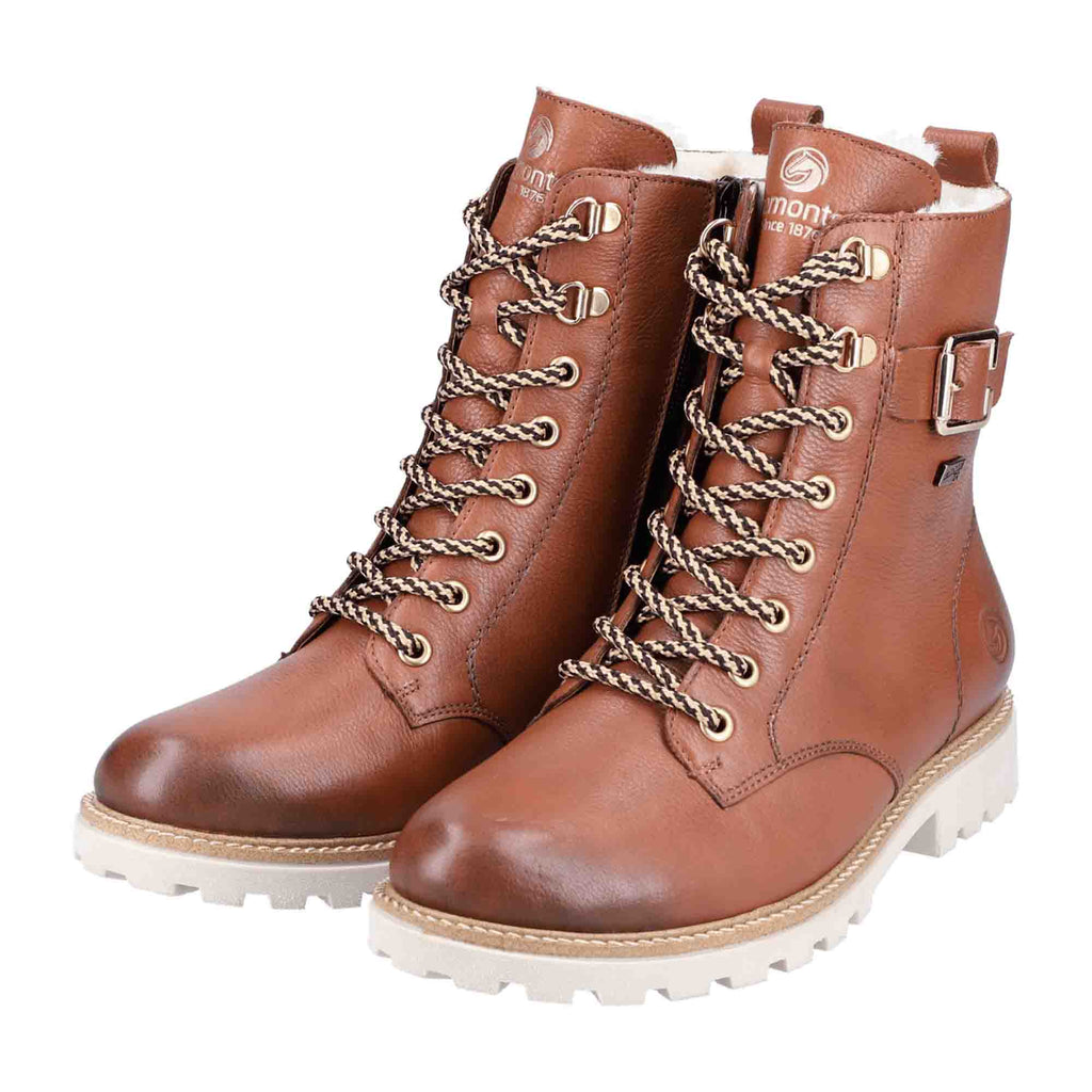 Remonte Women's Brown Leather Biker Boots with Warm Lining and Stylish Buckle