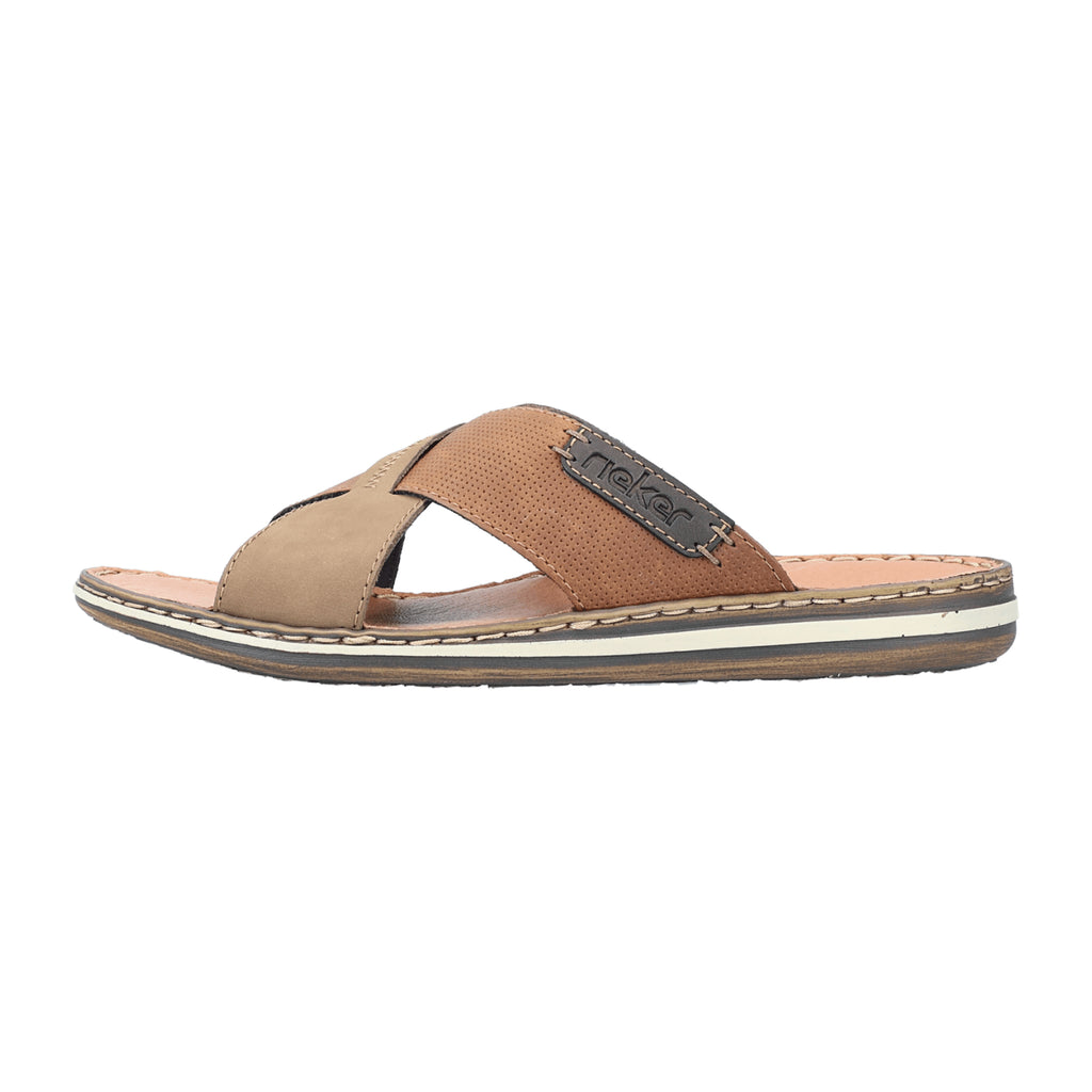 Rieker 21088 Men's Brown Slip-On Sandals Leather Upper Comfortable Fit
