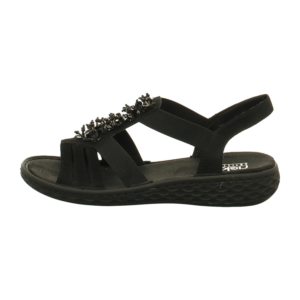 Rieker Black Women's Sandals with Elastic Straps and Decorative Design