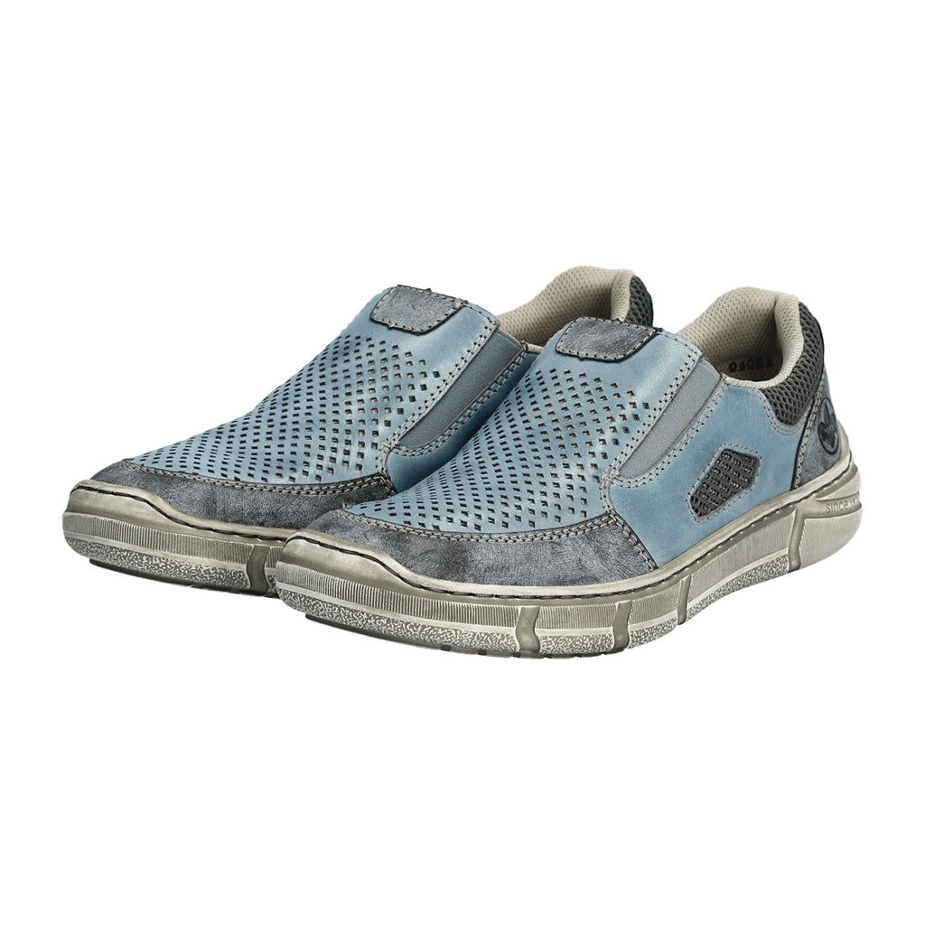 Rieker FSK Men's Blue Slip-On Loafers with Flat Heel and Synthetic Leather
