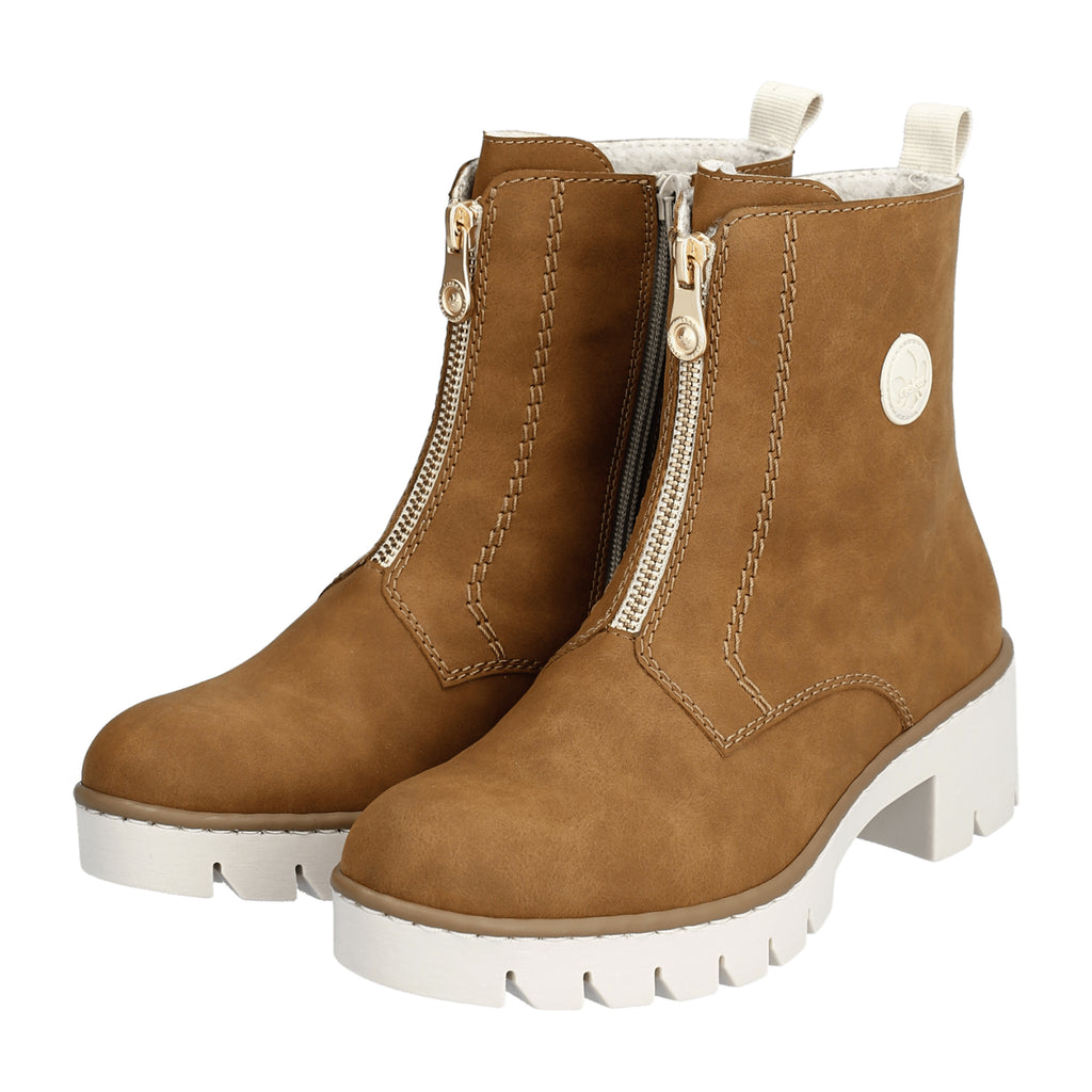 Rieker HWK Brown Women's Boots with Zipper for Fall Winter Synthetic Material