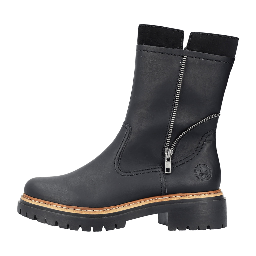 Rieker HWK Women's Black Boots for Fall Winter, Faux Leather, Comfortable Fit