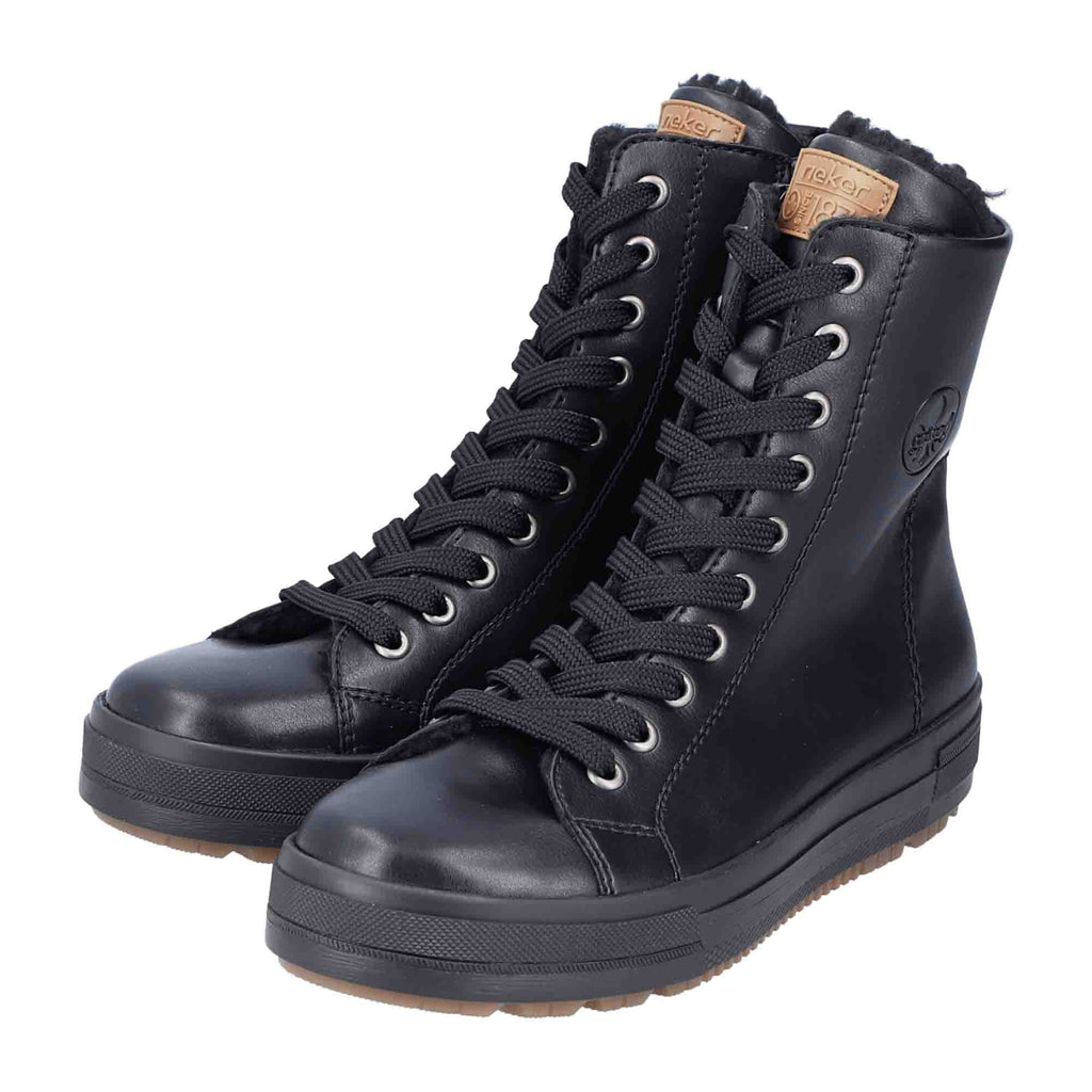 Rieker HWK Women's Black Boots with Faux Leather and Warm Lining