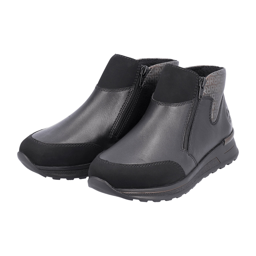 Rieker HWK Women's Black Leather Boots with Removable Insole and Warm Lining
