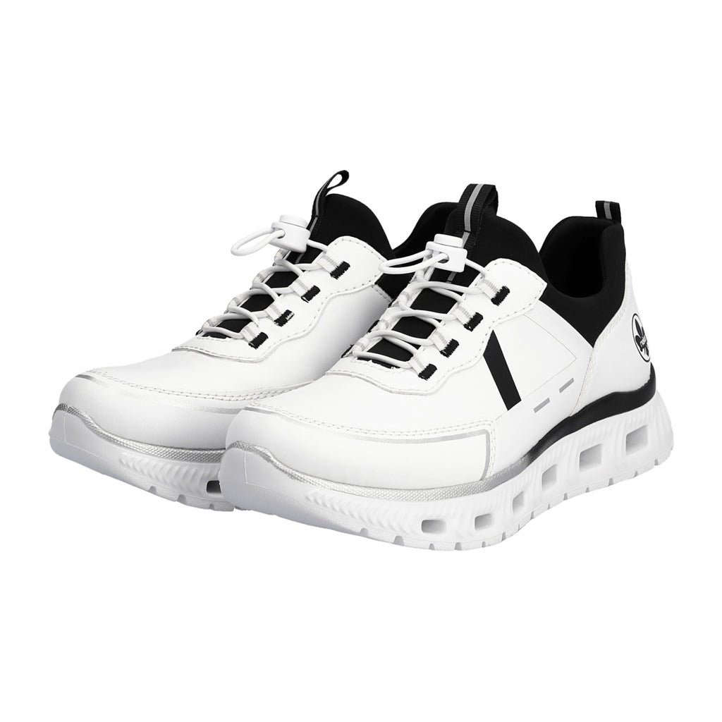 Enhance your style with these durable and chic Rieker M6062 shoes. Perfect for everyday wear, these white flats feature a comfortable flat sole and a normal width fitting (G). The synthetic leather upper and textile lining provide both style and breathability. With a heel height of 4cm and slip-on closure, these shoes offer convenience without compromising on fashion. The white PU sole adds a modern touch to these versatile shoes.
