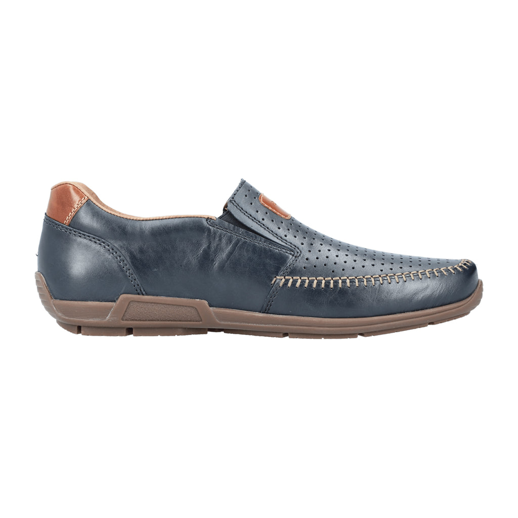 Rieker Men's Blue Leather Slip-On Shoes with Brown Sole