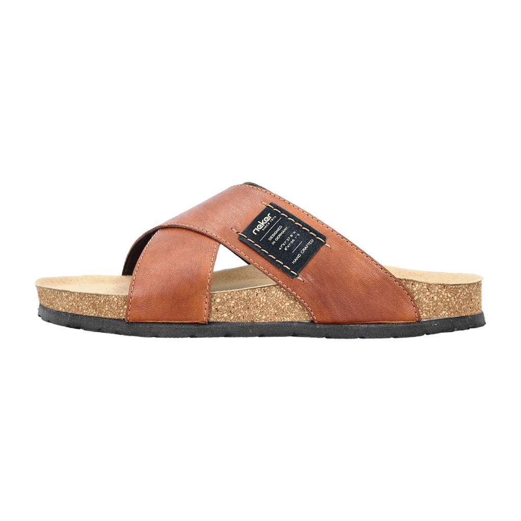 Rieker Men's Brown Slip-On Leather Sandals with Flexible Lightweight Sole