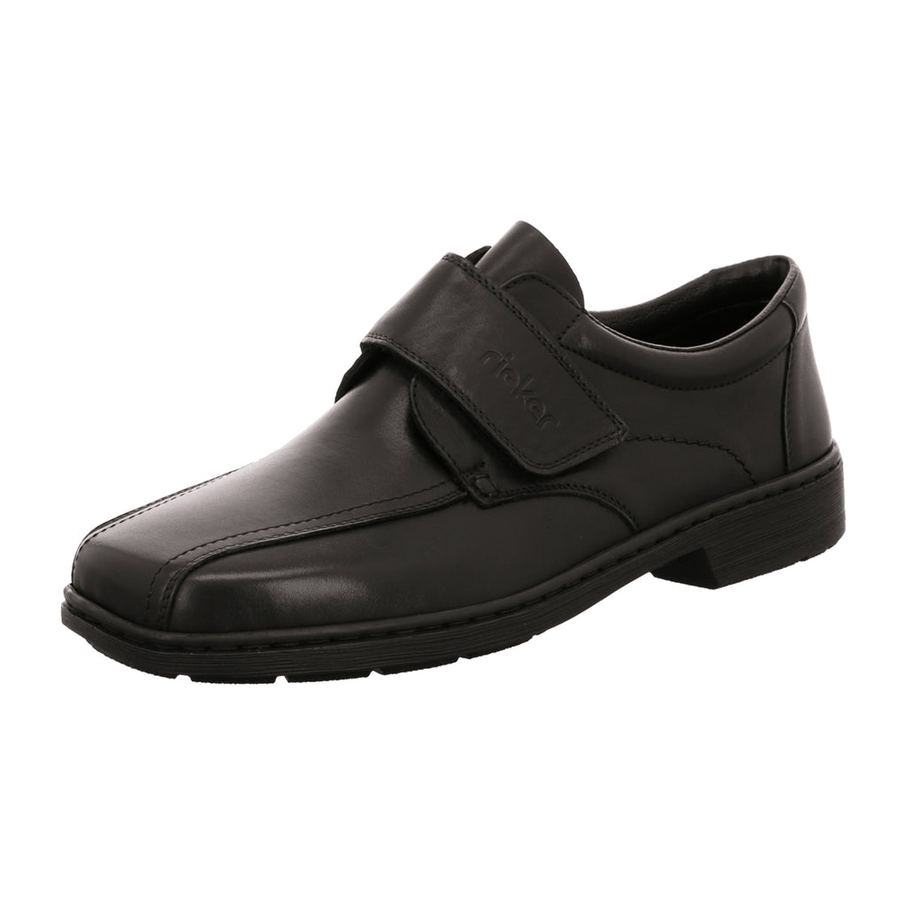 Rieker Nico Black Leather Shoes with Velcro Closure and Wide Fit