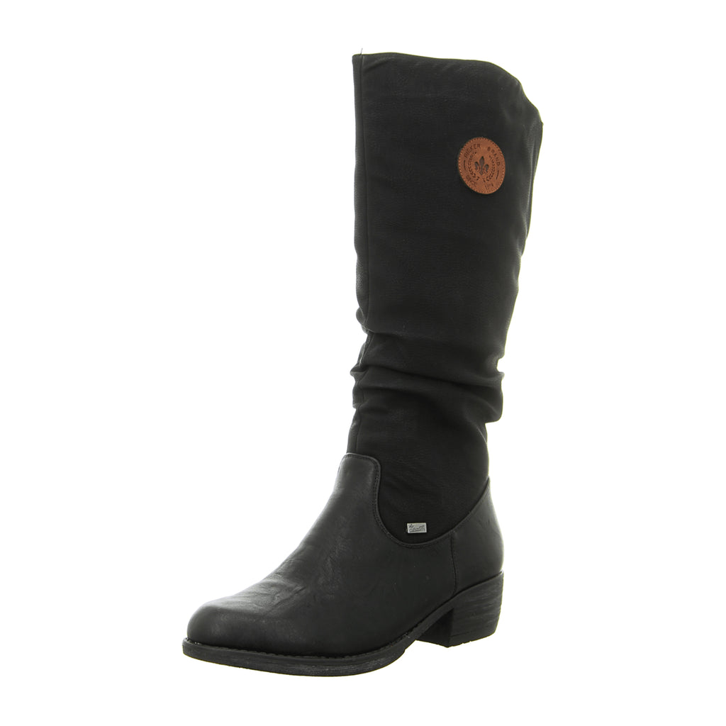 Rieker Women's Black Long Shaft Boots with Warm Lining and Side Zipper