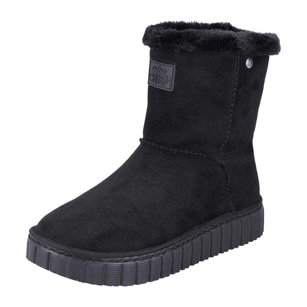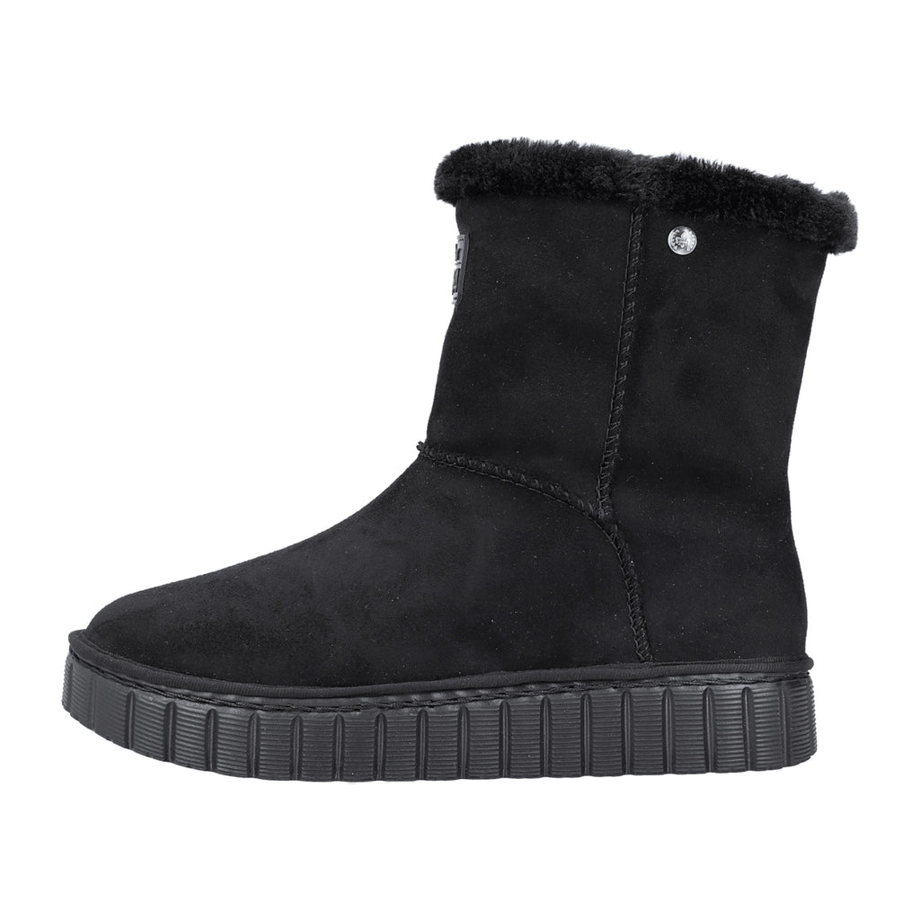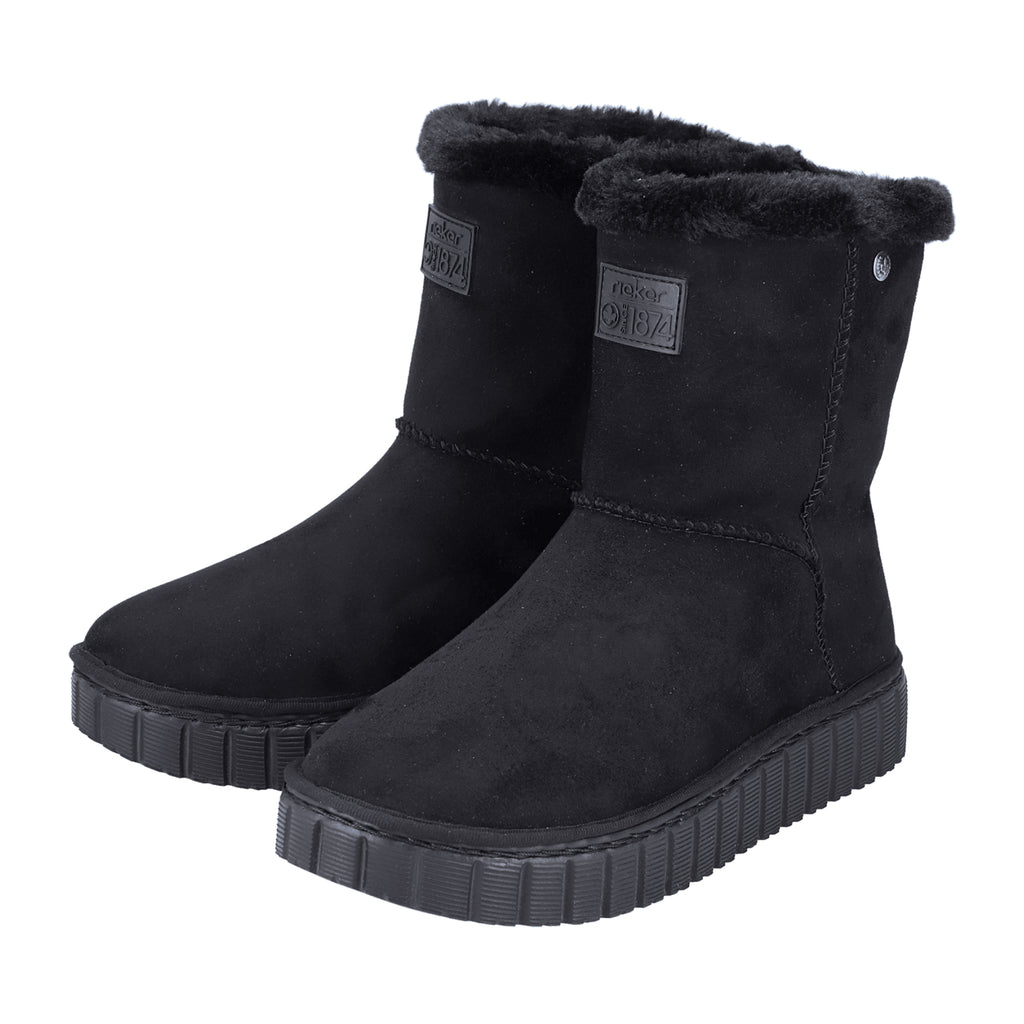 Rieker Women's Black Winter Boots Warm Lined Textile Upper Flat Heel