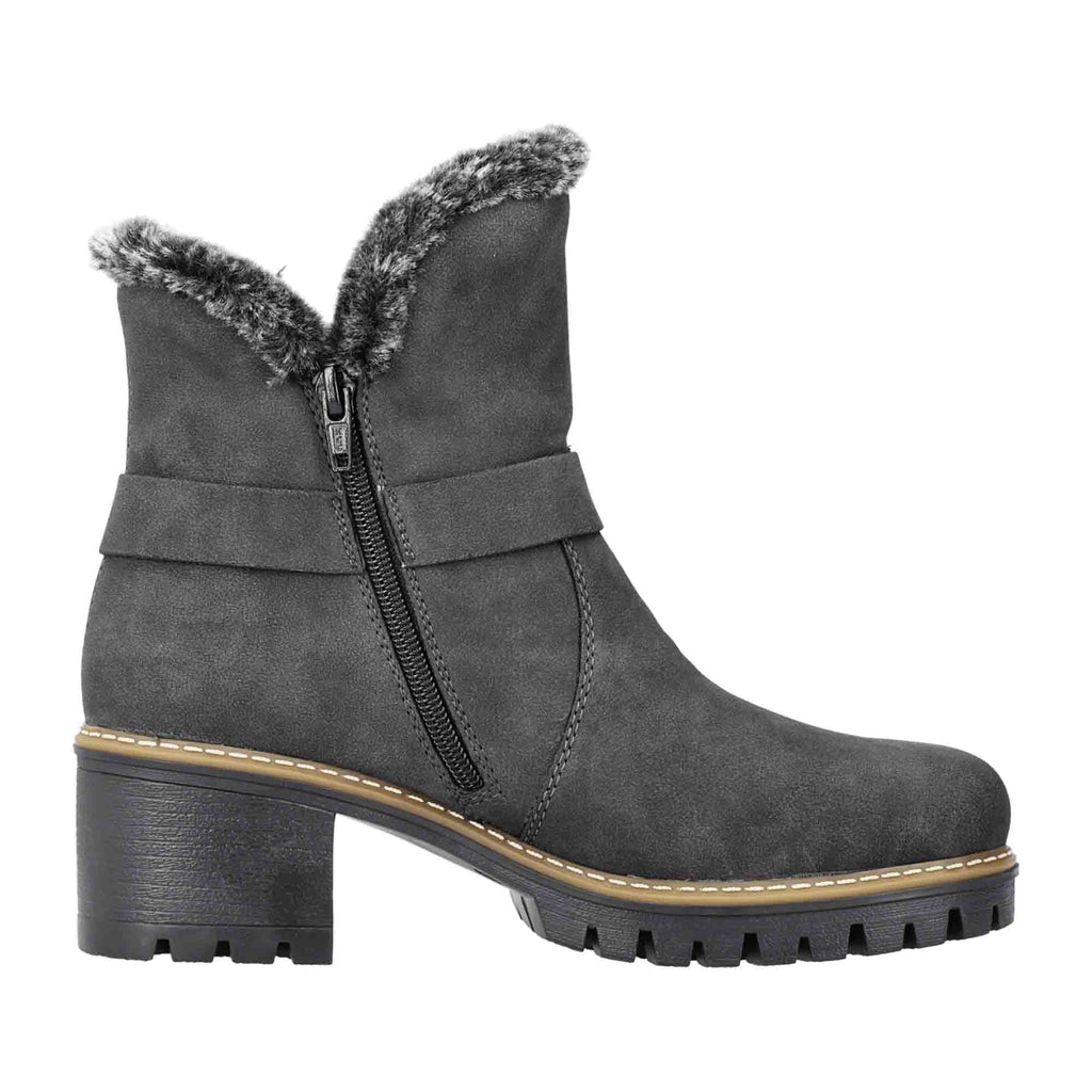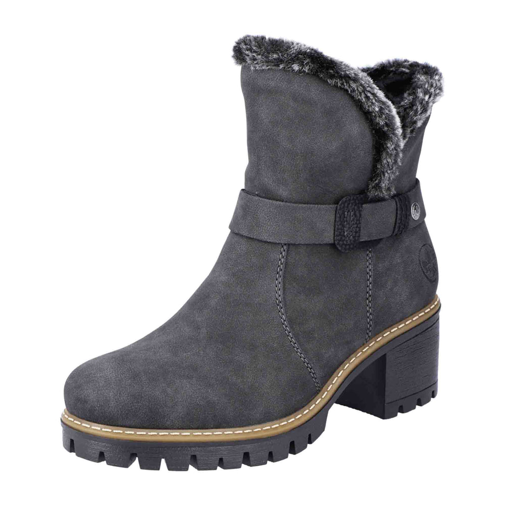 Rieker Women's Classic Gray Ankle Boots with Warm Lining and Side Zipper