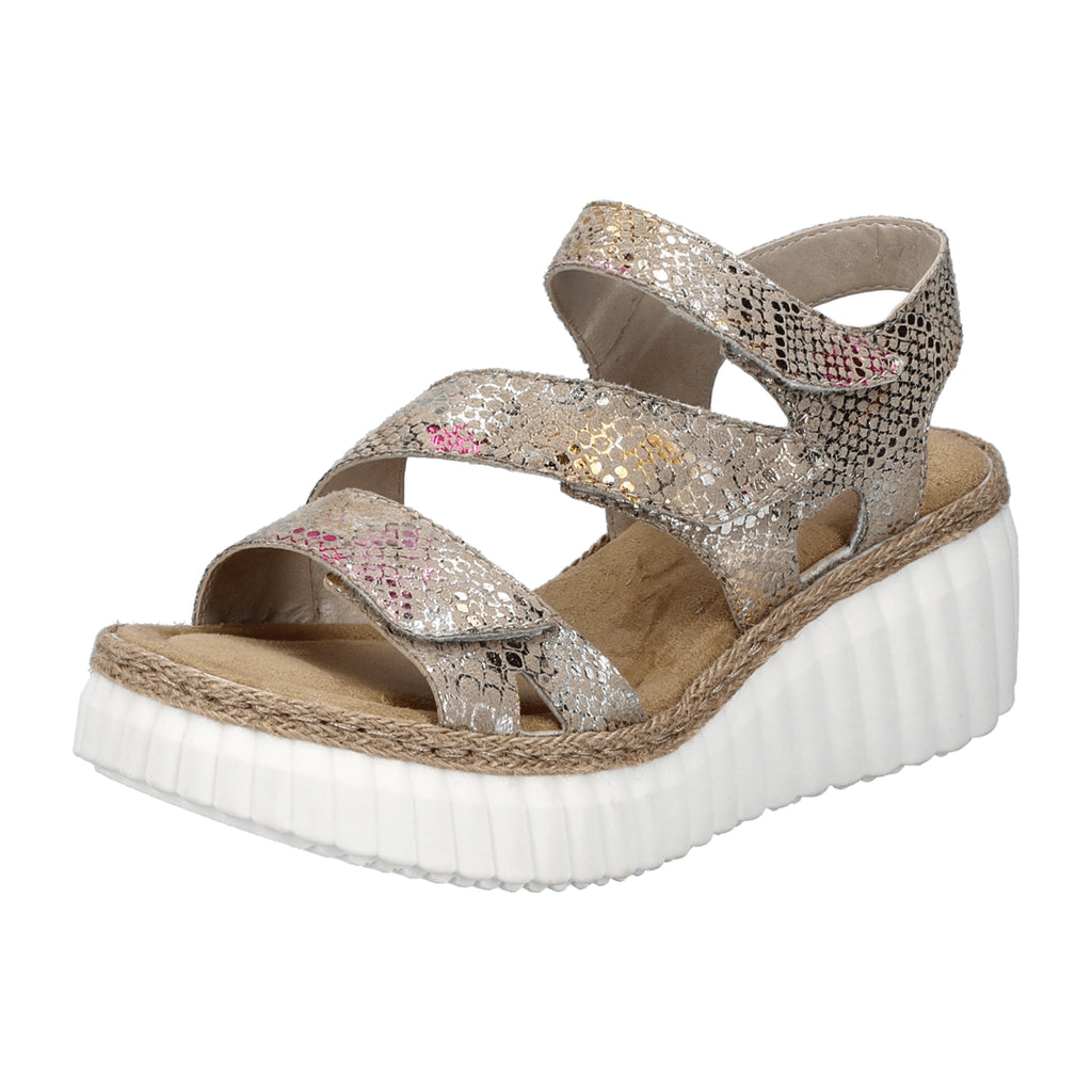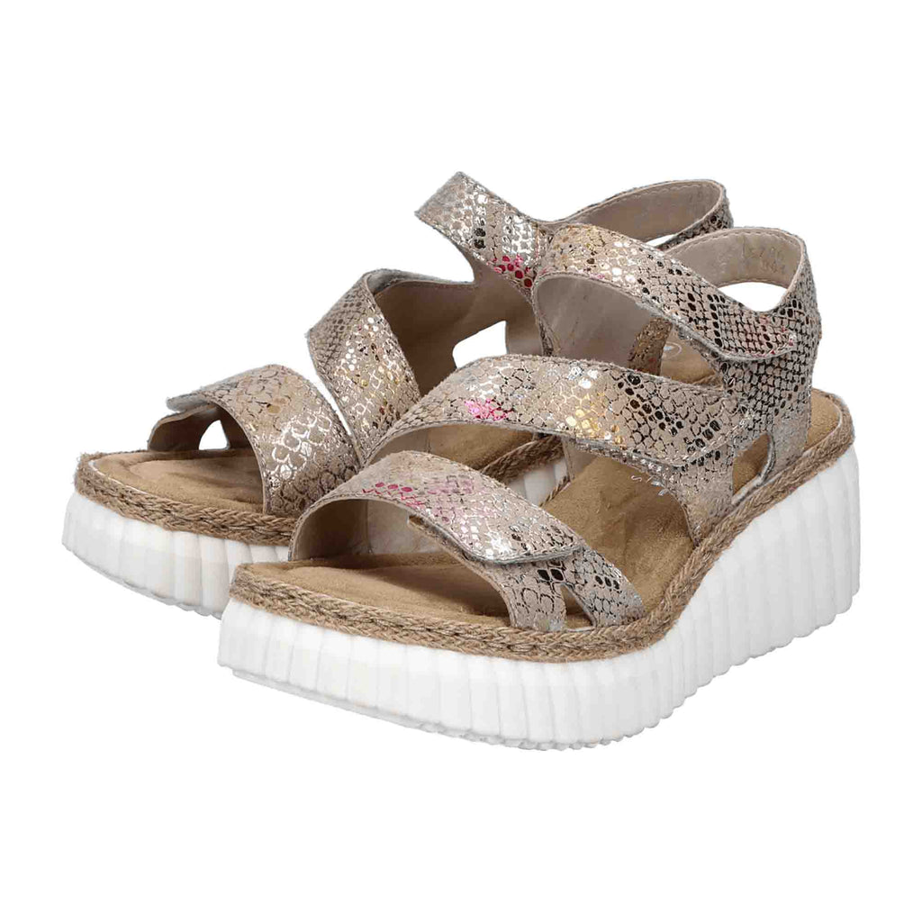 Rieker Women's Colorful Sandals with Wedge Heel and PU Sole