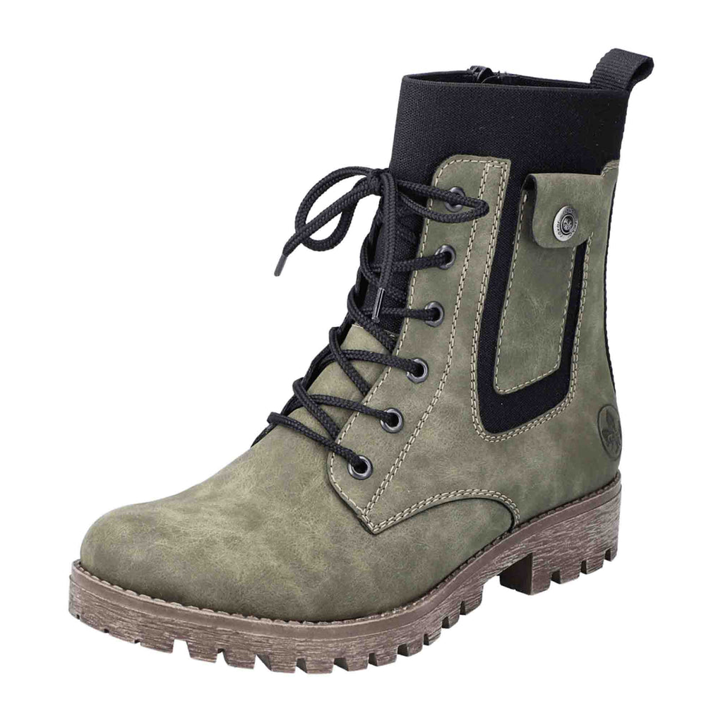 Rieker Women's Green Lace-Up Ankle Boots with Warm Lining for Winter
