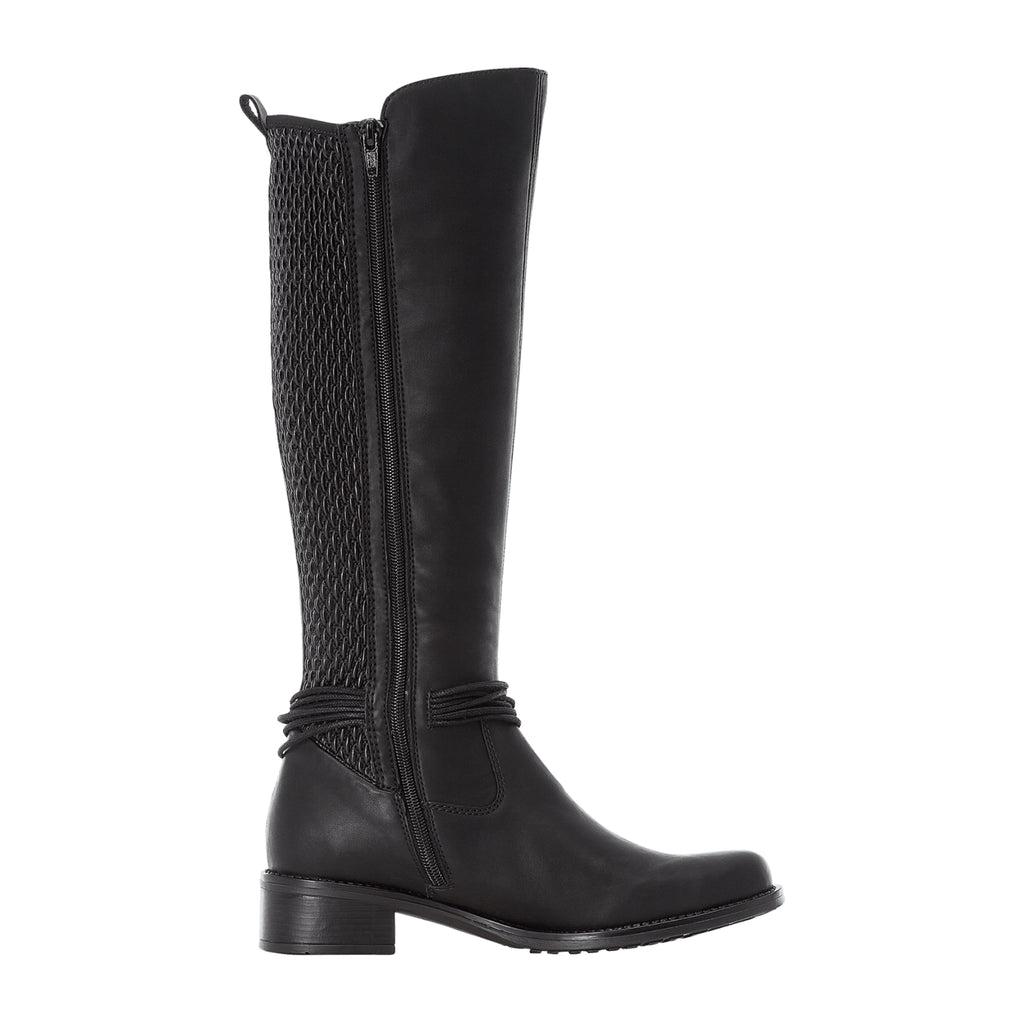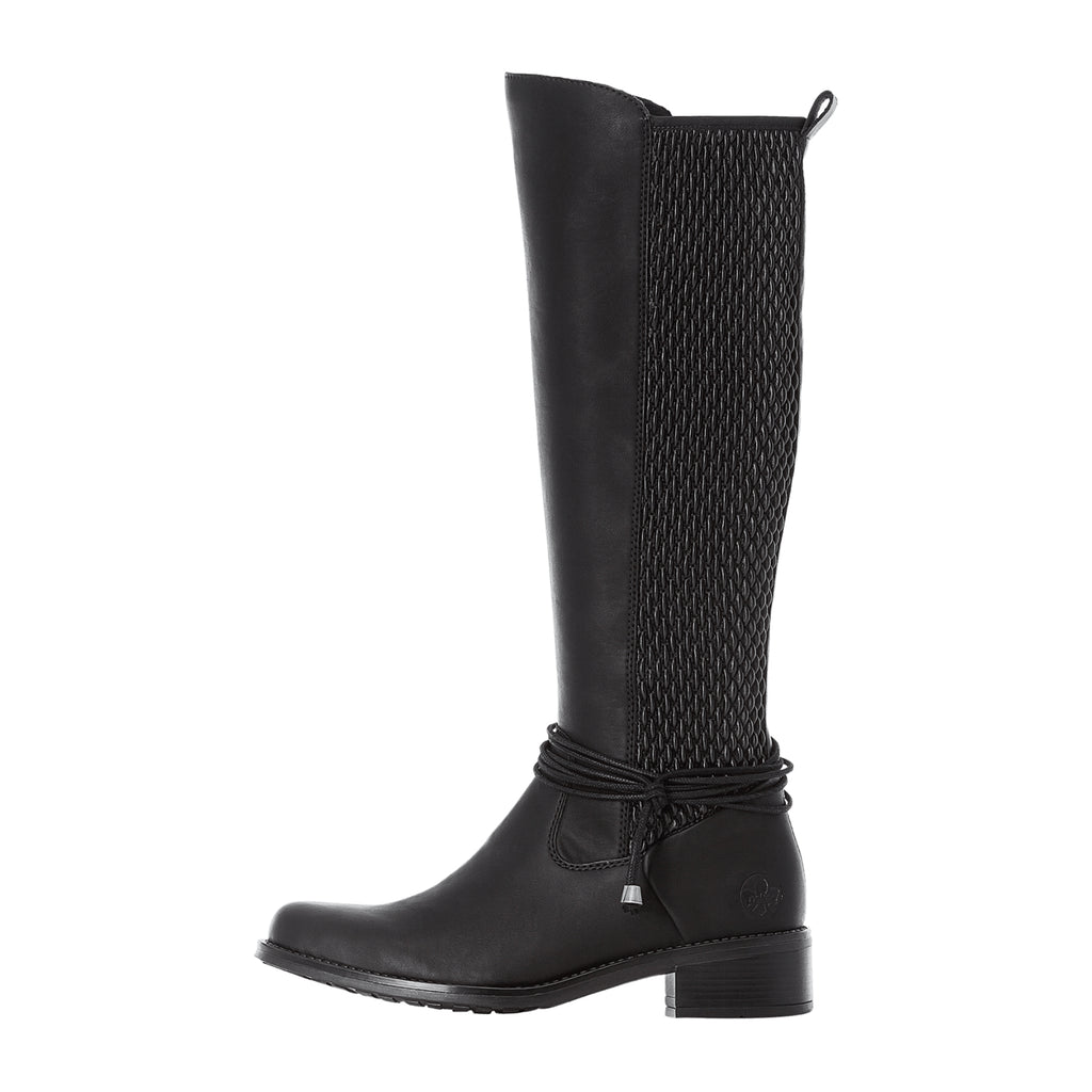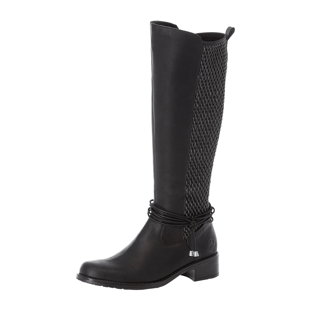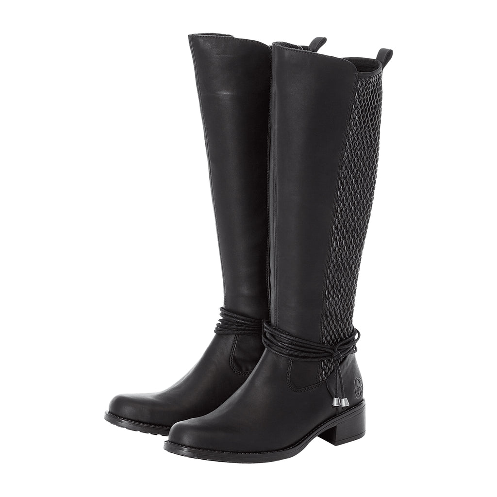 Rieker Women's Knee-High Boots Black with Side Zipper and Block Heel