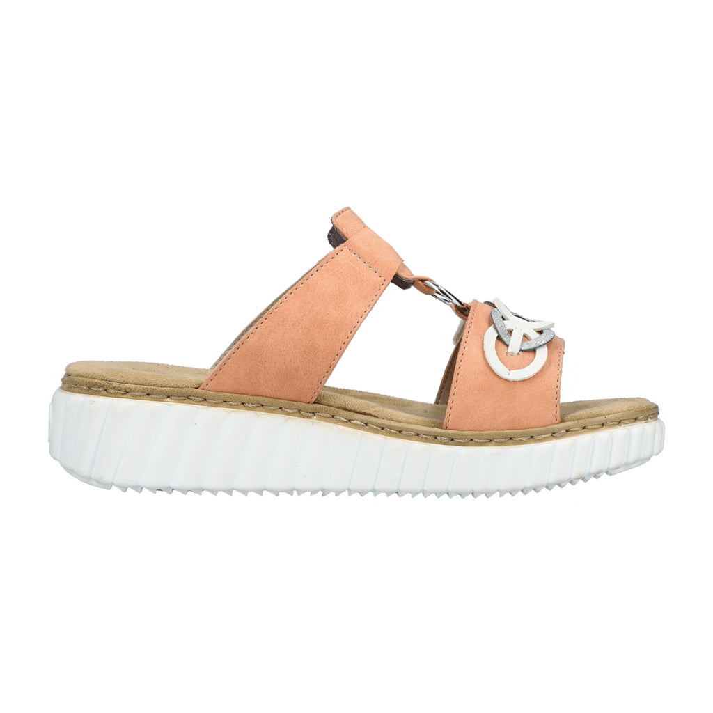 Stay comfortable and stylish with these Rieker 63294-38 sandals in apricot, off-white, and fog-silver. Perfect for any occasion, these sandals feature a wedge heel of up to 3.5 cm, wide fit, and open toe design. The convenient velcro closure and durable synthetic materials make them a must-have for your footwear collection.