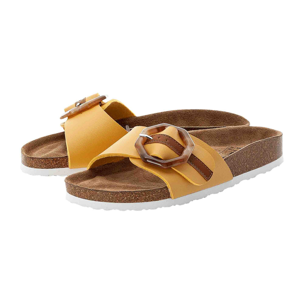 Stay stylish and comfortable with these Rieker FSK Damen Sandals in vibrant yellow. Perfect for the upcoming spring and summer seasons, these sandals feature genuine leather upper, synthetic inner material, and a durable rubber sole. The adjustable shaft width ensures a personalized fit, while the slip-on design provides easy on and off. With a slim to normal (F) shoe width, these sandals offer a versatile and chic look for young adults seeking both durability and style.