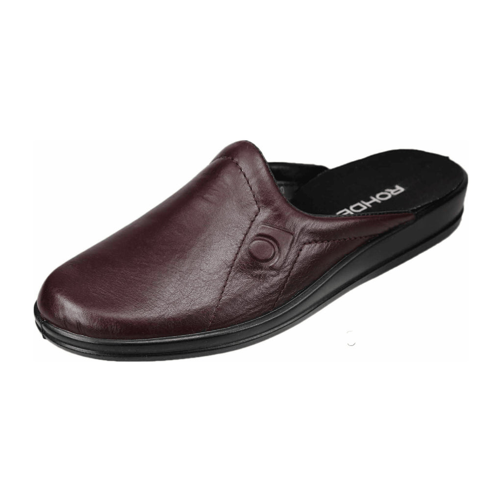 Stay cozy and stylish with these durable Rohde Men's Slippers in vibrant red. Crafted from genuine leather, these slippers feature a comfortable wedge heel, round toe, and easy slip-on design. Perfect for the autumn/winter season, these slippers are both practical and fashionable.